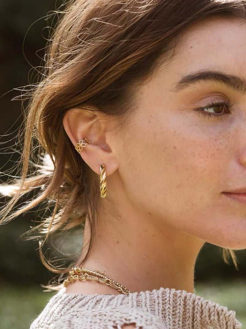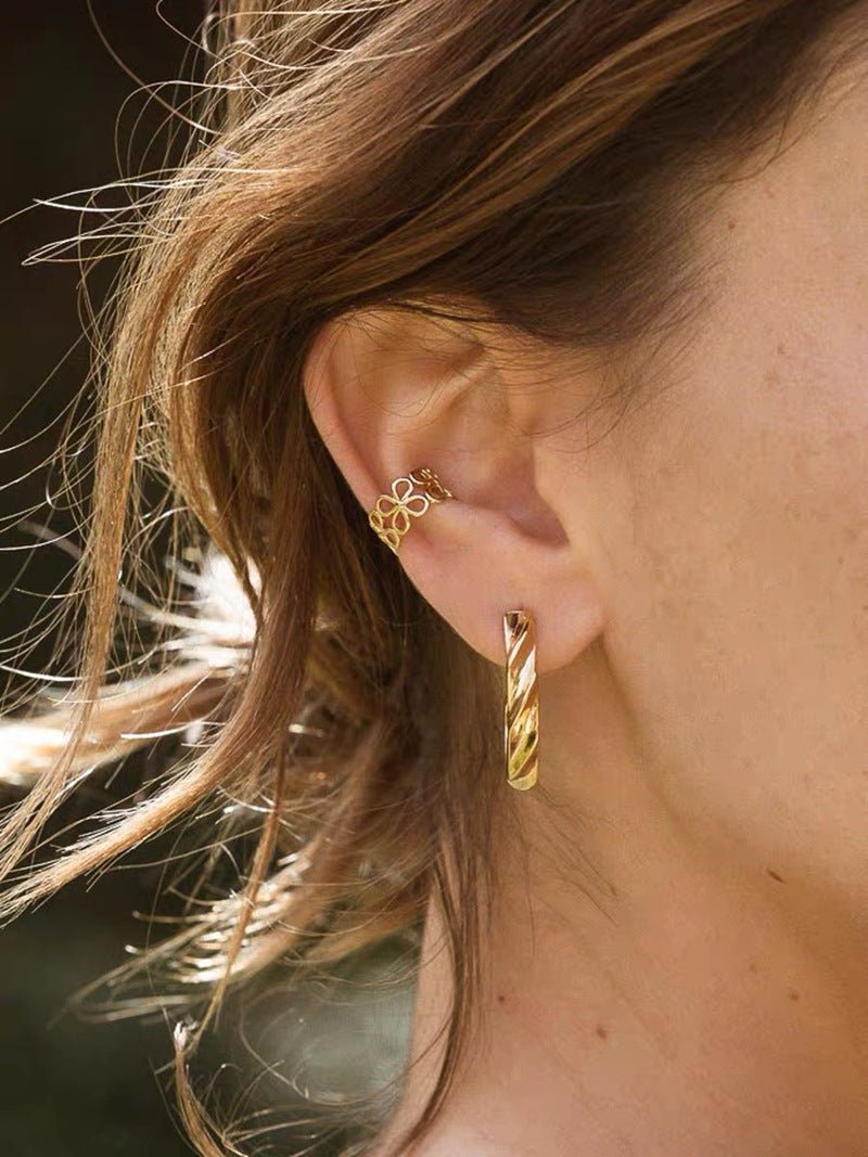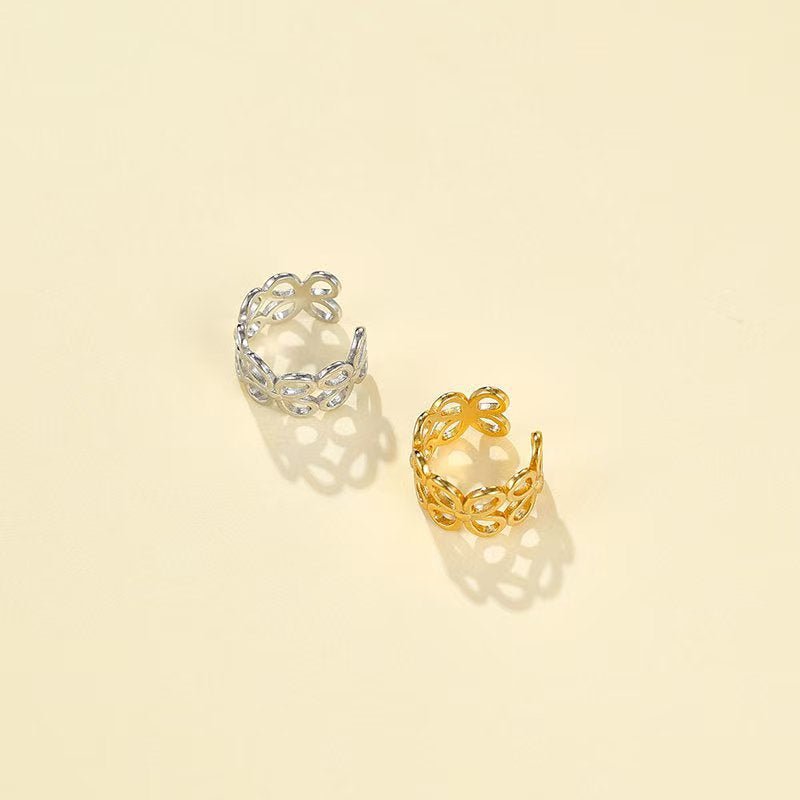 Inspired by the four-leaf clover, symbolizing luck and positivity, the design features a clean floral silhouette with a light and refined feel. The no-piercing ear cuff structure allows you to simply clip it onto the ear, making it easy and comfortable to wear. Crafted from 925 sterling silver or gold-plated silver, it is lightweight, smooth, and suitable for all-day wear.