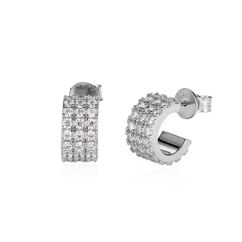 - Style: C-Hoop / Huggie Earring, Full Pave CZ