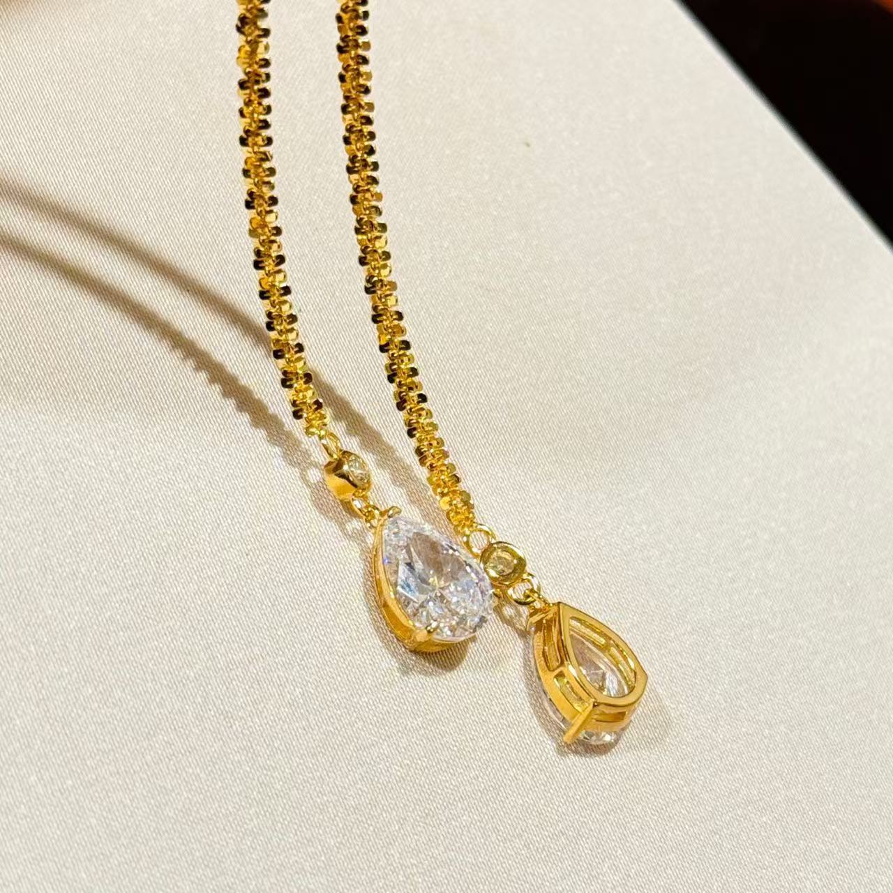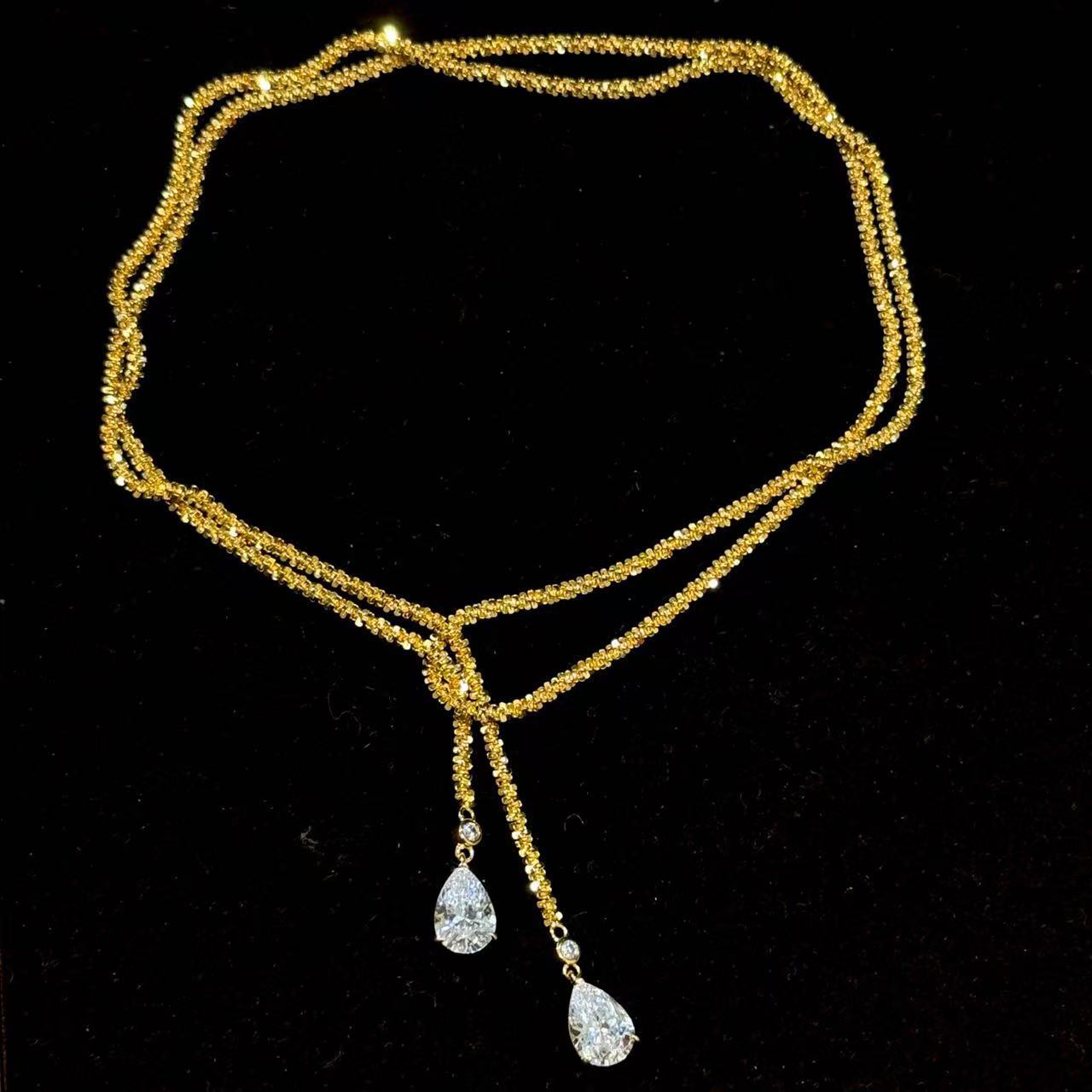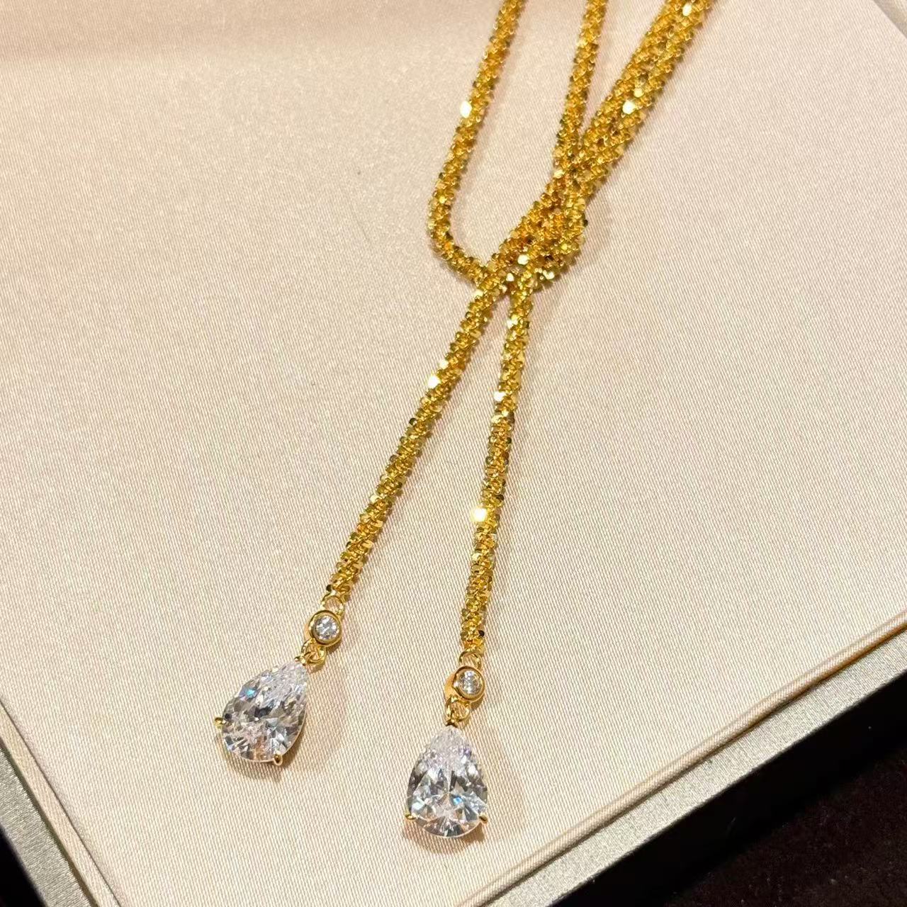 Inspired by vintage Italian design, this S925 sterling silver necklace features 18K gold-plated threads and crystal “shattered ice” teardrop details.