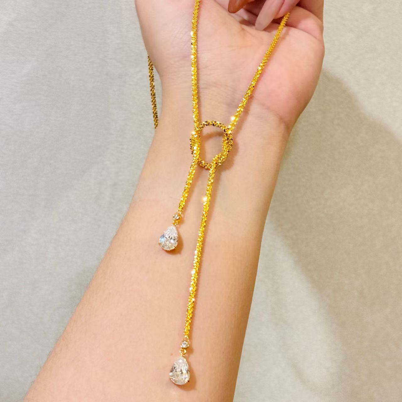 The versatile long chain can be styled as a sweater necklace, layered chain, or statement accessory for daily outfits.