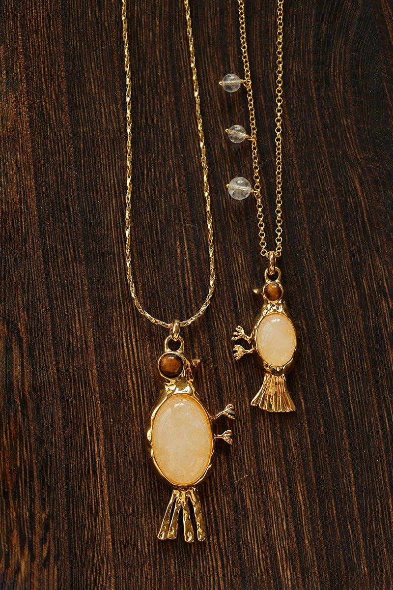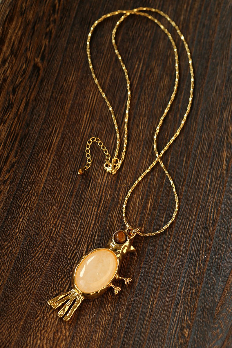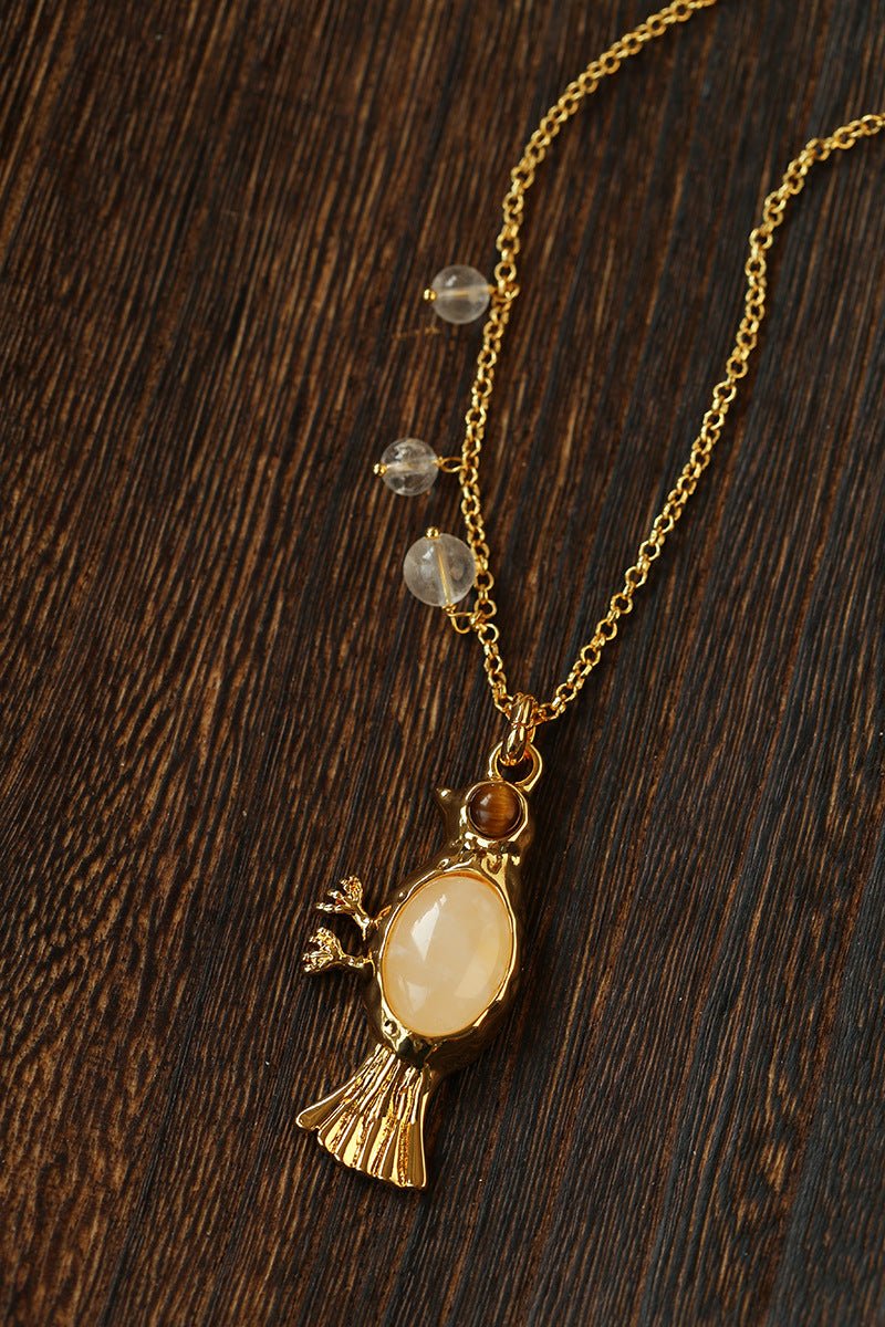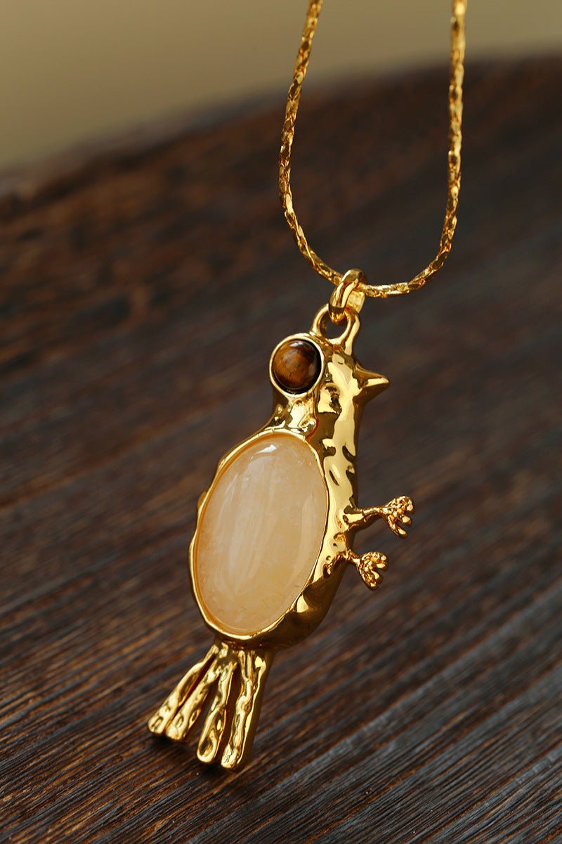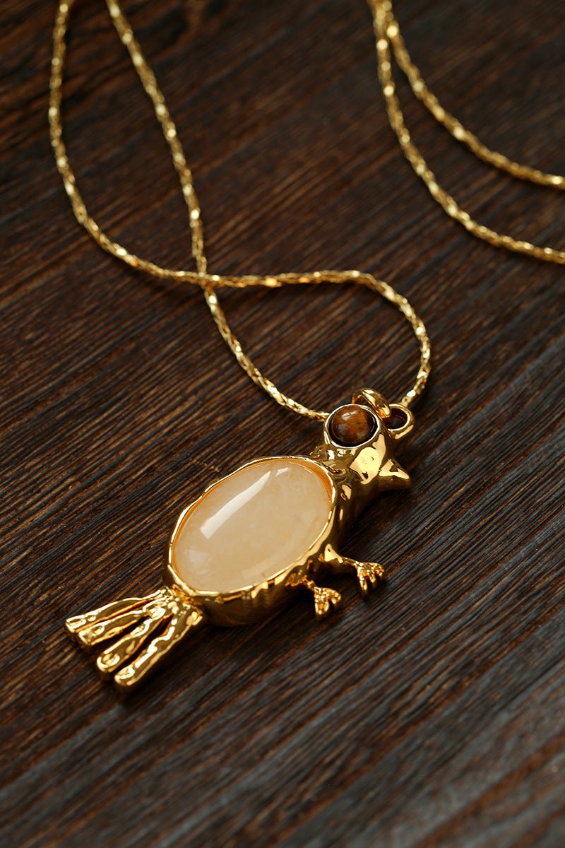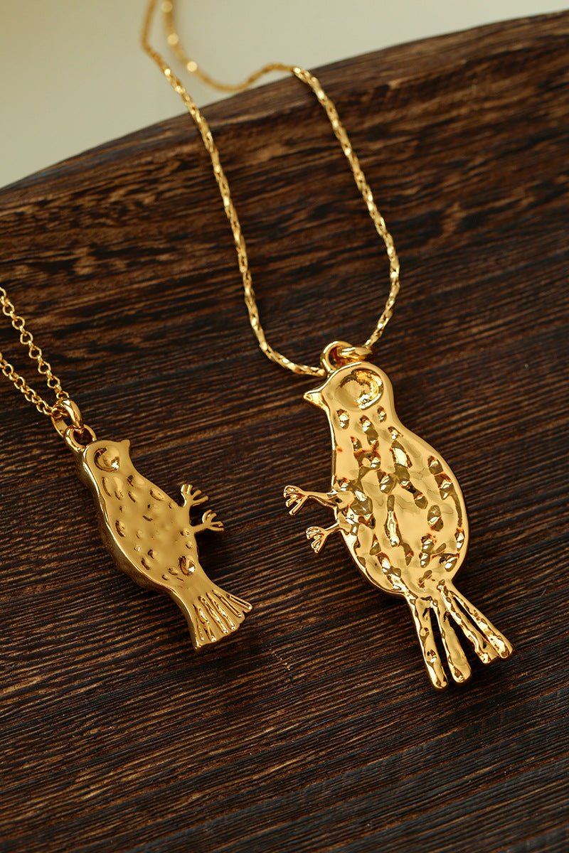 Crafted with thick 18K gold-plated brass, the sculpted bird pendant is rich in detail and character.