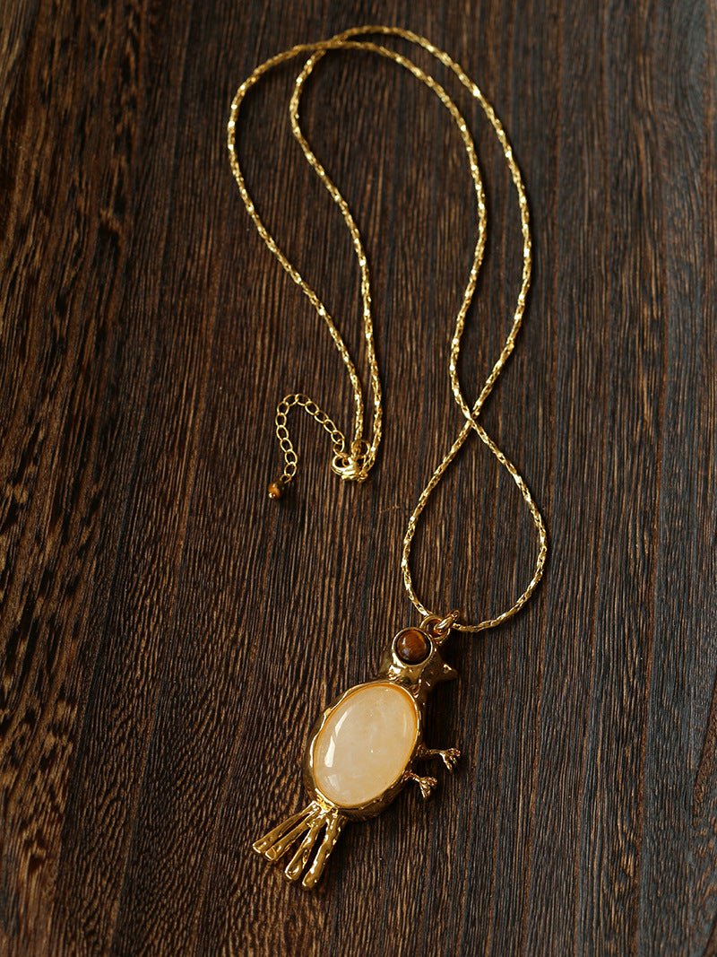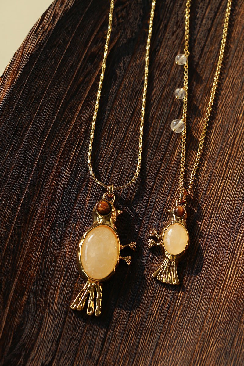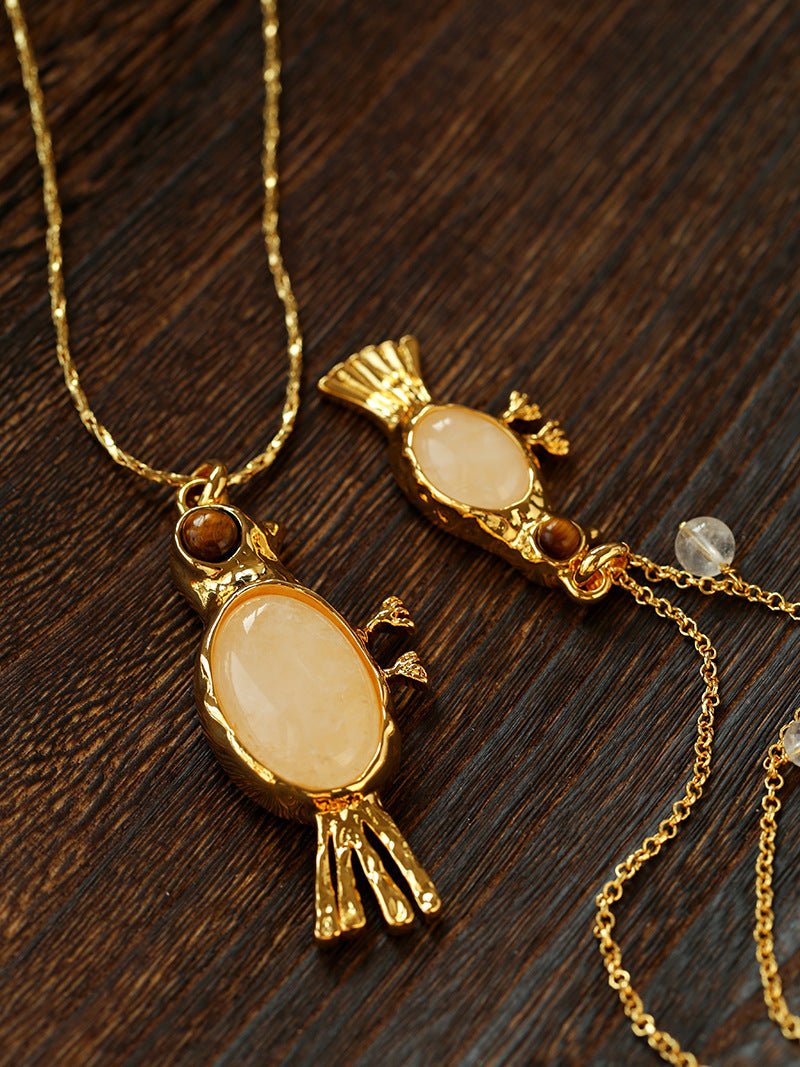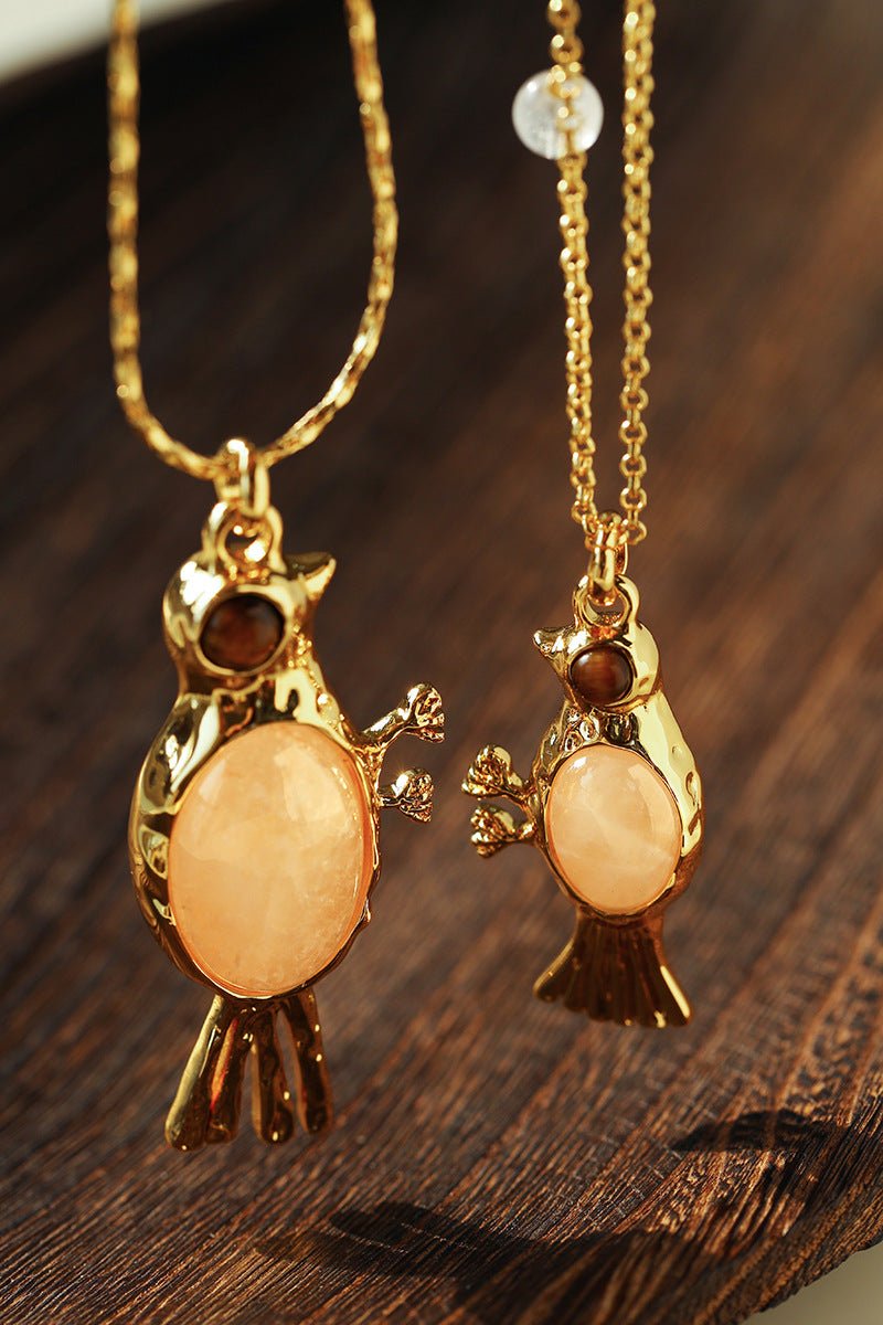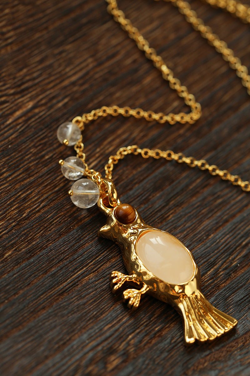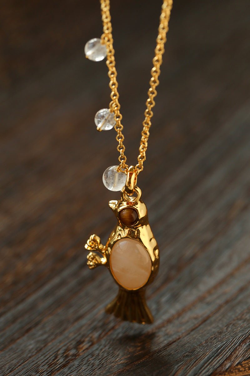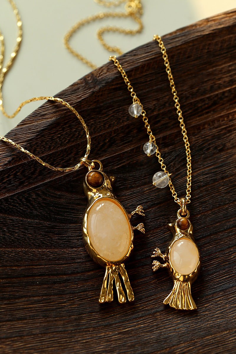 Crafted with thick 18K gold-plated brass, the sculpted bird pendant is rich in detail and character.