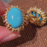 Grand Vintage Lace Blue Turquoise Hoop Earrings Regal Filigree Setting