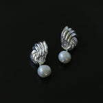 Spiral Metal Wind Stripe Pearl Drop Earrings