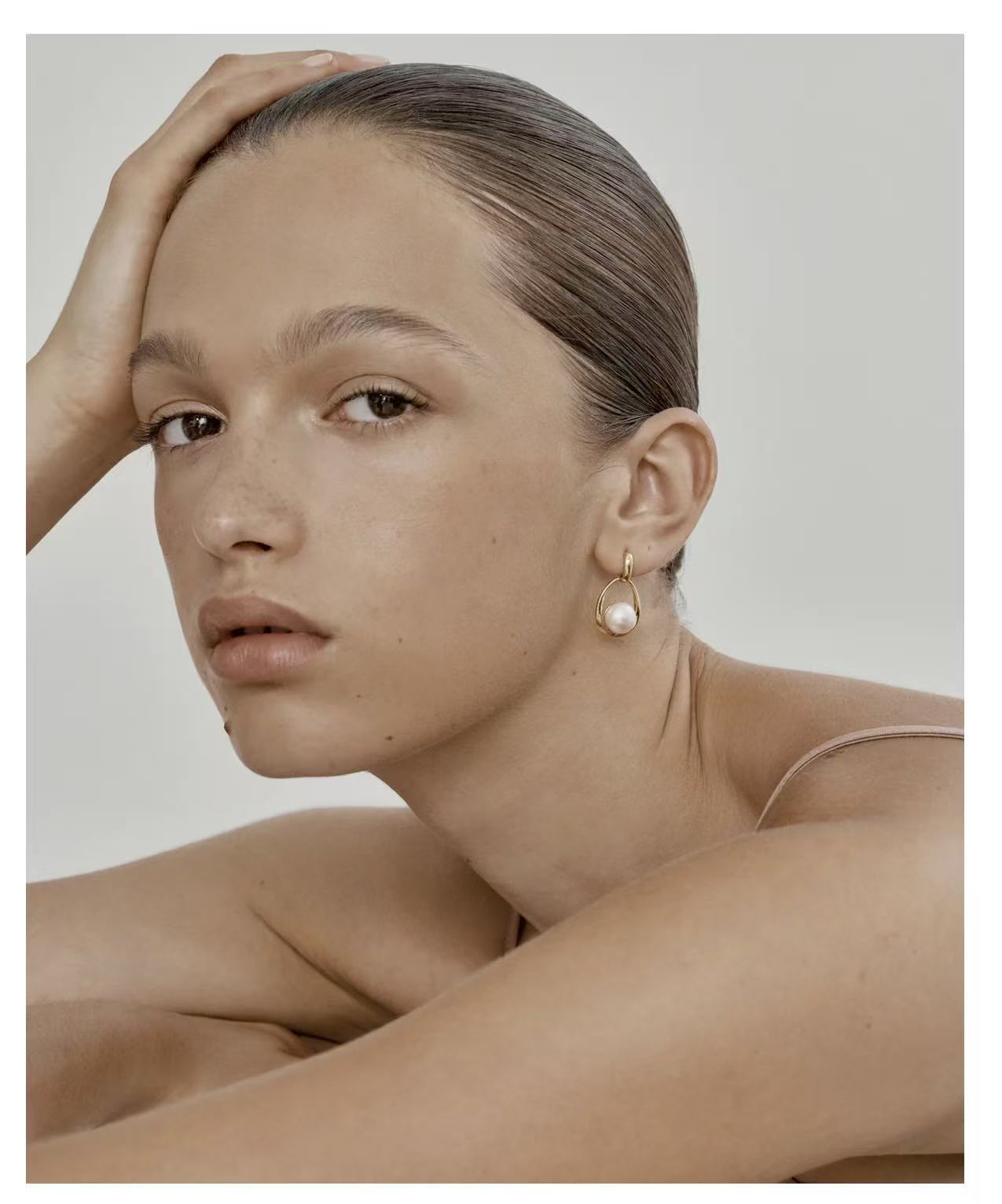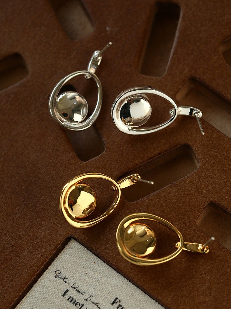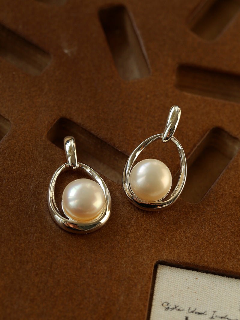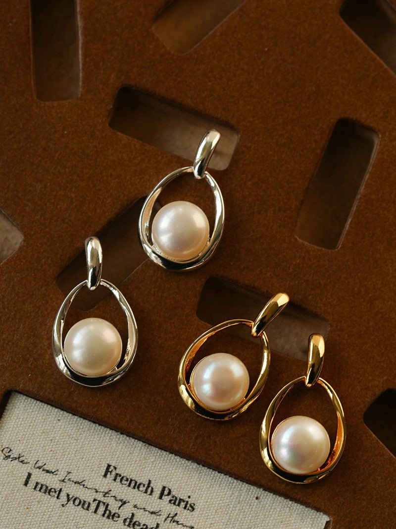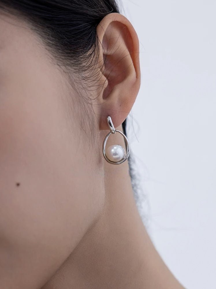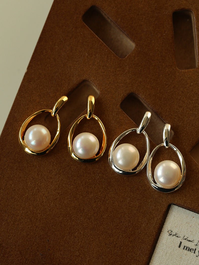 Inspired by French vintage aesthetics, these teardrop pearl earrings feature clean geometric lines that gently outline a fluid, open teardrop shape. The airy hollow design creates a subtle skin-revealing effect—light, elegant, and irresistibly refined.