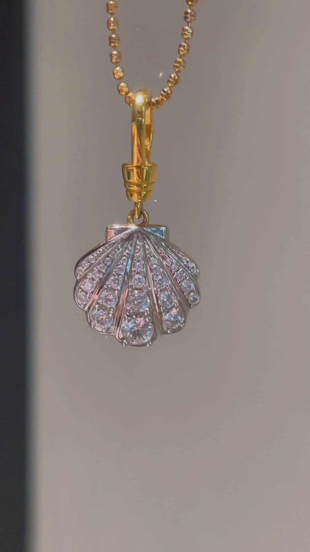 A sparkling statement piece that captures elegance from every angle. This double-sided shell pendant is crafted from solid 925 sterling silver and finished with premium 18K gold electroplating in both white and yellow tones, creating a refined two-tone effect.
