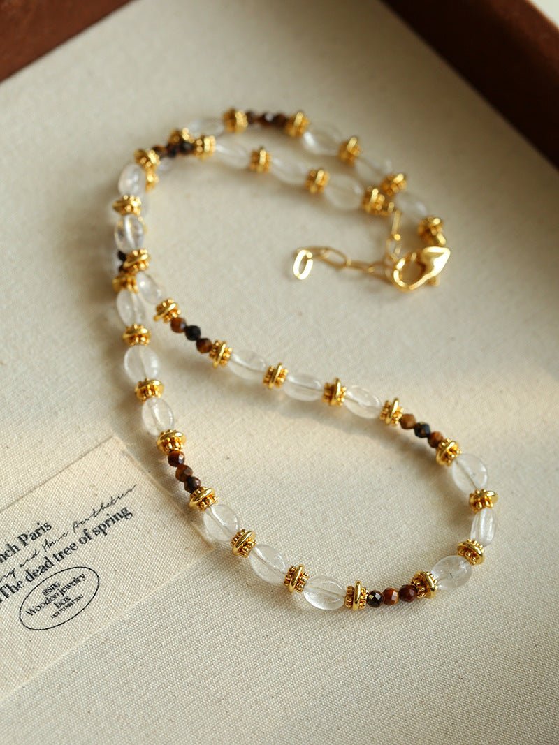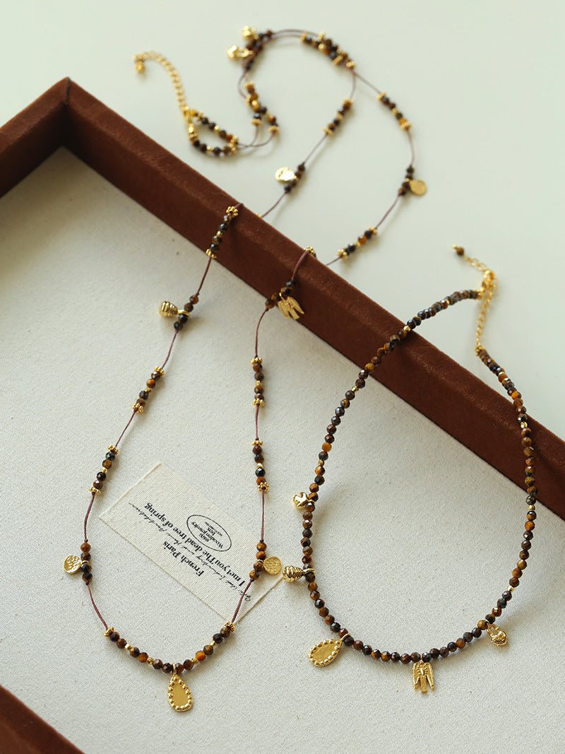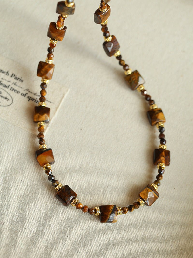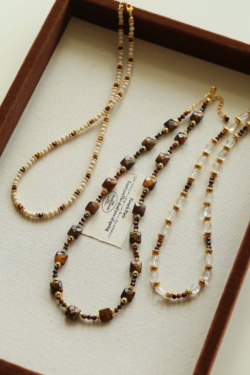 Embrace the warmth of autumn and winter with this Vintage Maillard Beaded Necklace. Crafted with natural Tiger Eye beads, each piece showcases a unique chatoyant shimmer that reflects light beautifully. Perfect for layering or wearing alone, this necklace adds a touch of vintage charm and natural elegance to any outfit. Ideal for daily wear or as a thoughtful gift for loved ones.