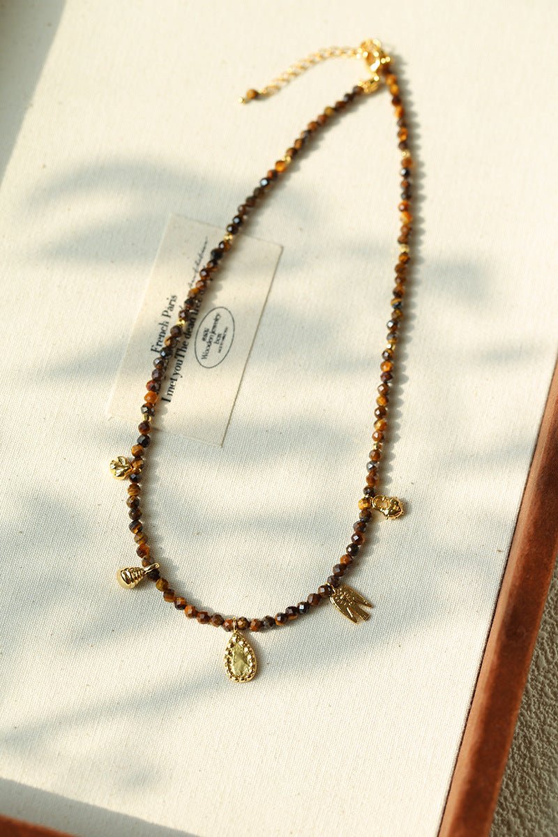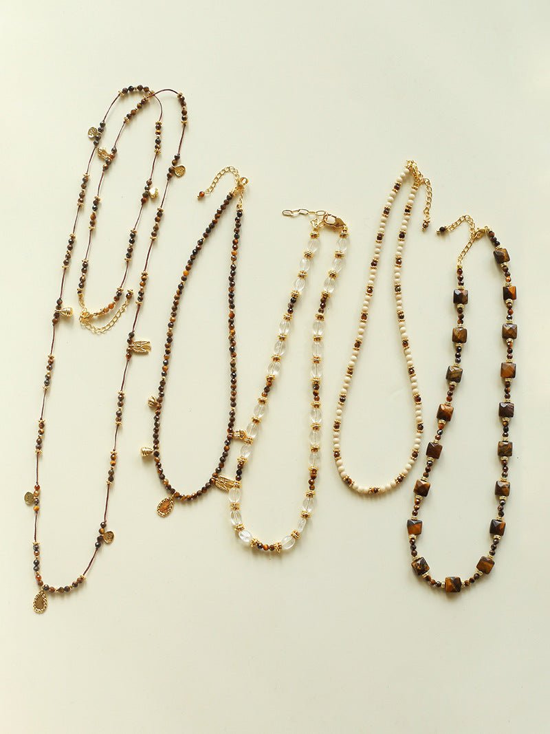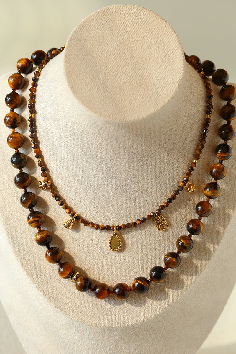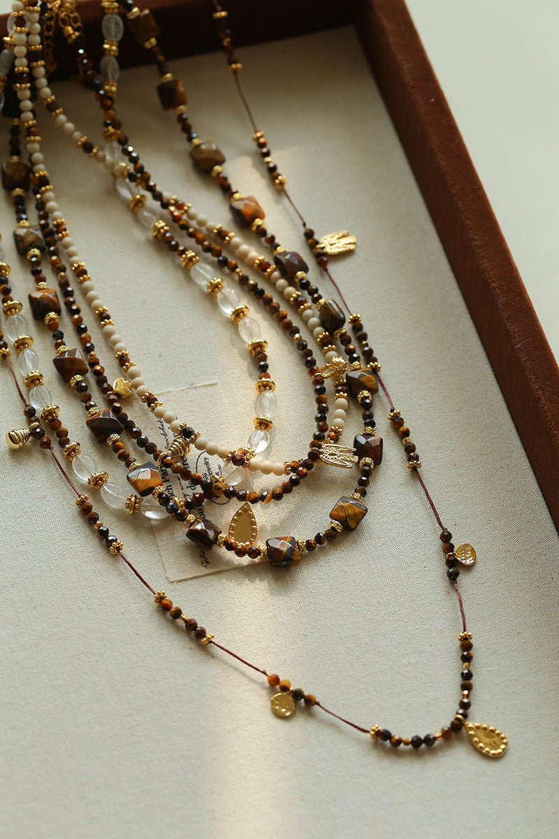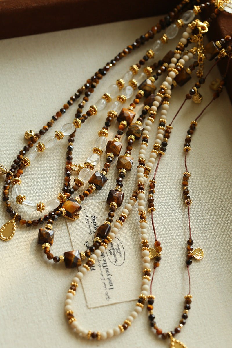Vintage Autumn - Winter Maillard Beaded Necklace – Natural Tiger Eye Beads - floysun
