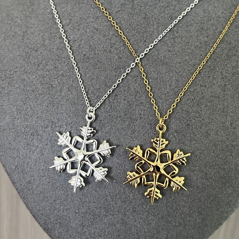 Inspired by the quiet beauty of the season’s first snow, this necklace features a sleek, polished snowflake pendant that captures winter’s delicate glow. The minimalist silhouette blends vintage charm with modern elegance, making it perfect for daily wear, office outfits, or festive winter styling.