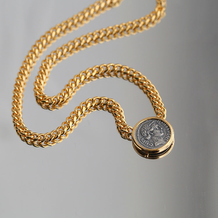 Vintage Roman Lady Luck Coin Pendant Necklace