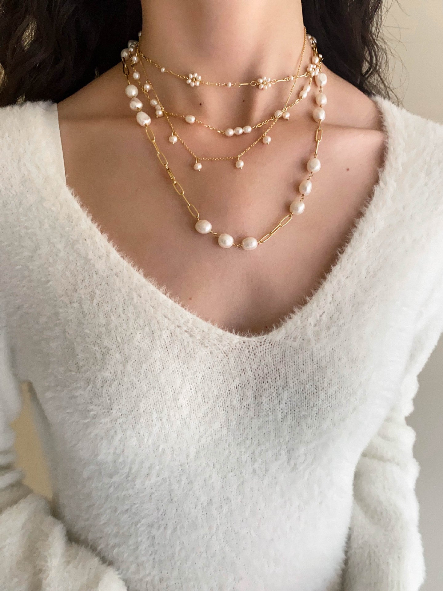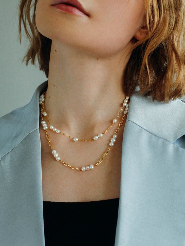 Immerse yourself in the realm of exquisite craftsmanship with our proudly presented Handcrafted Chain and Pearl Necklace. This necklace seamlessly blends handcrafted chains with carefully selected pearls, creating a captivating piece of wearable art.