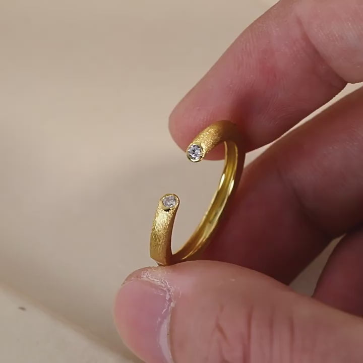 Minimalist Gold Open Ring | Two Lab-Grown Diamond End Caps