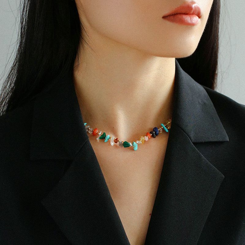 Irregular Colored Stone Natural Stone Bead Necklace - floysun