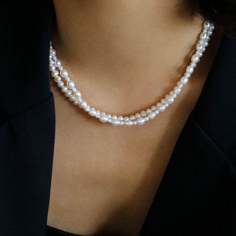 Pulldown Double-Layer Beaded Pearl Necklaces