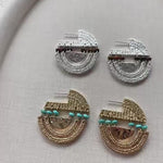 Featuring layered hoops with movable gold or silver-toned elements, accented by imitation blue turquoise and tiger's eye stones, these earrings sway gracefully with every step. A bold yet versatile statement — perfect for adding a touch of wild romance to your everyday look.