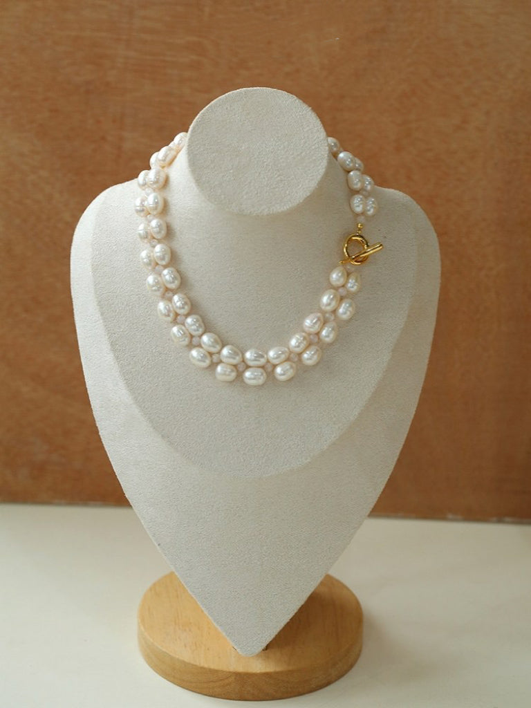 Double Layer Braided Freshwater Pearl Necklace OT Choker - floysun