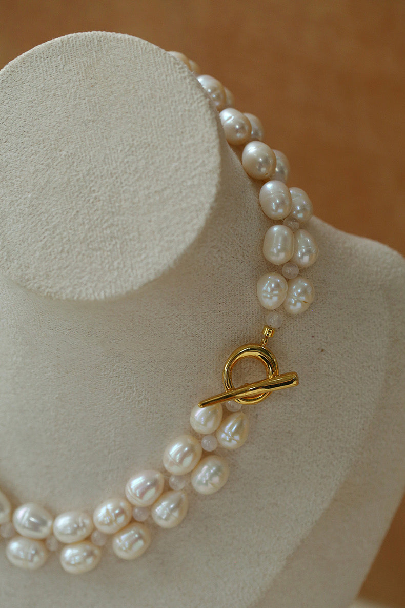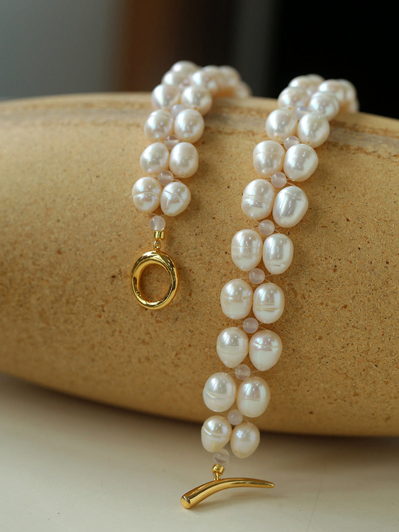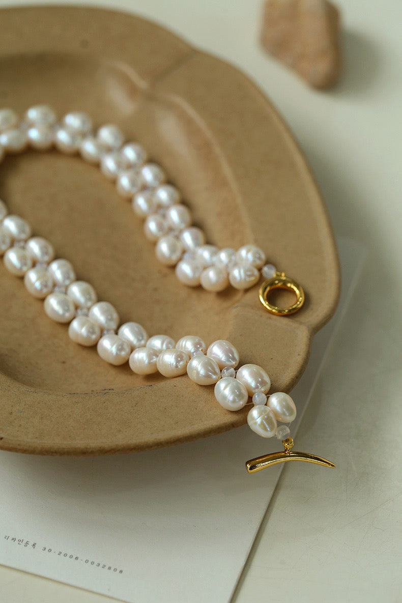 Double Layer Braided Freshwater Pearl Necklace OT Choker