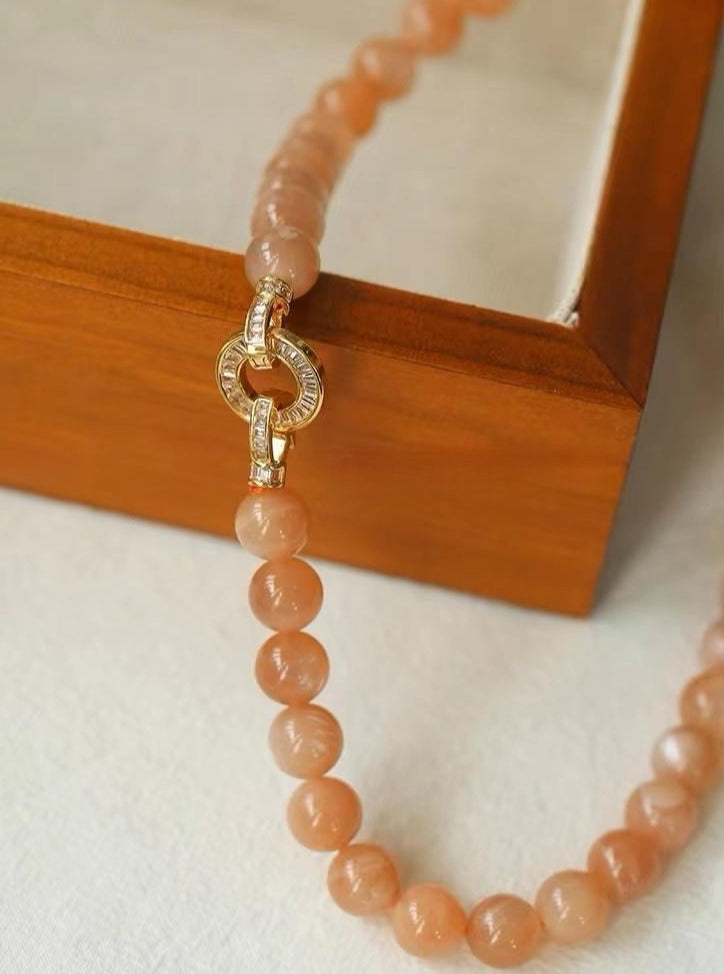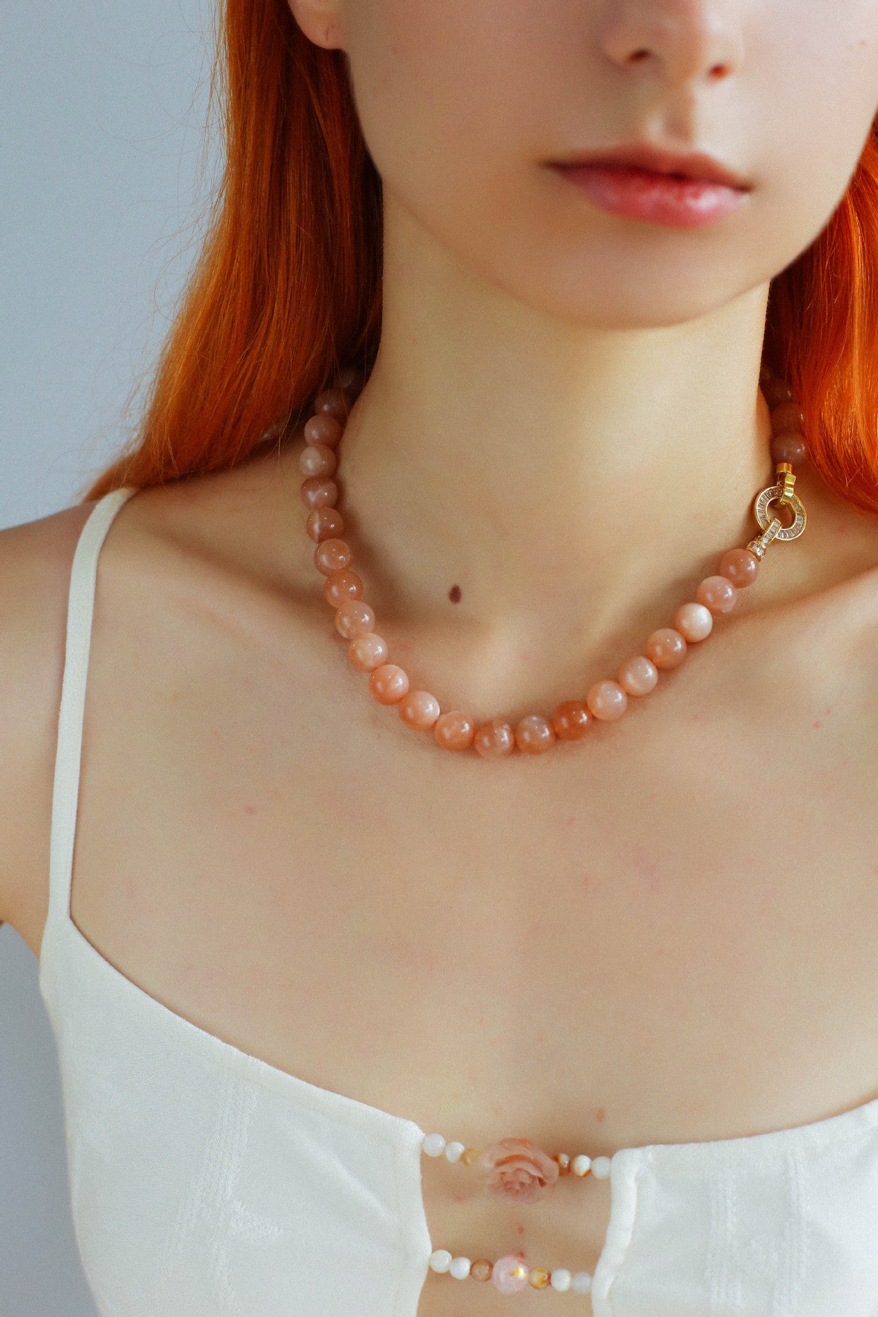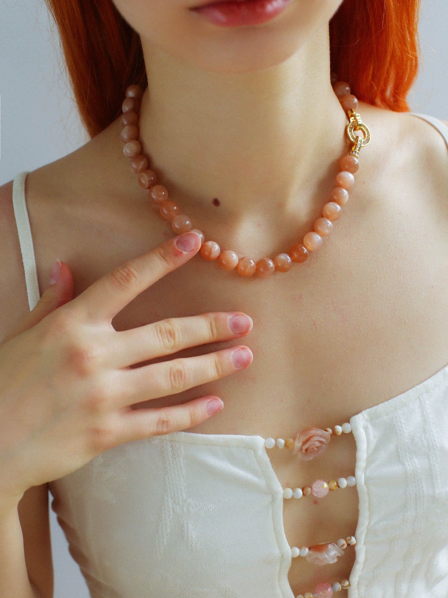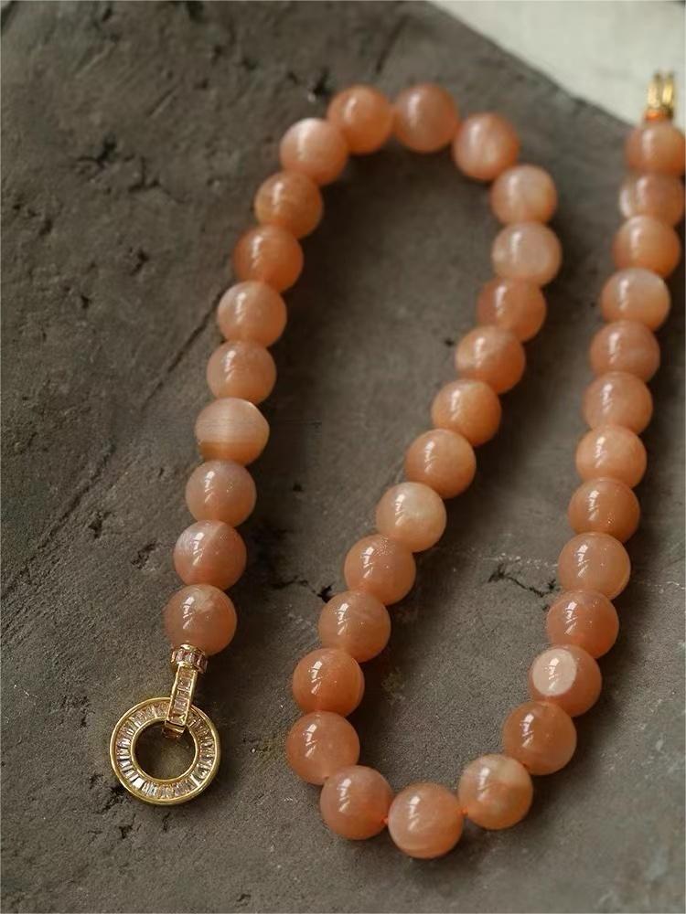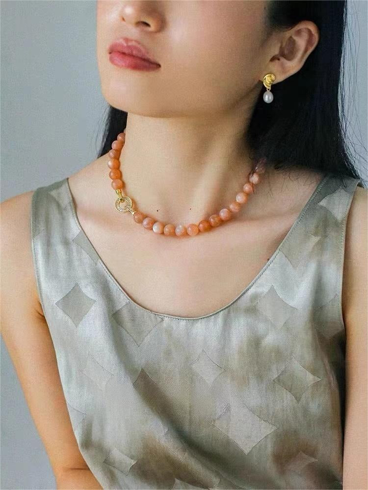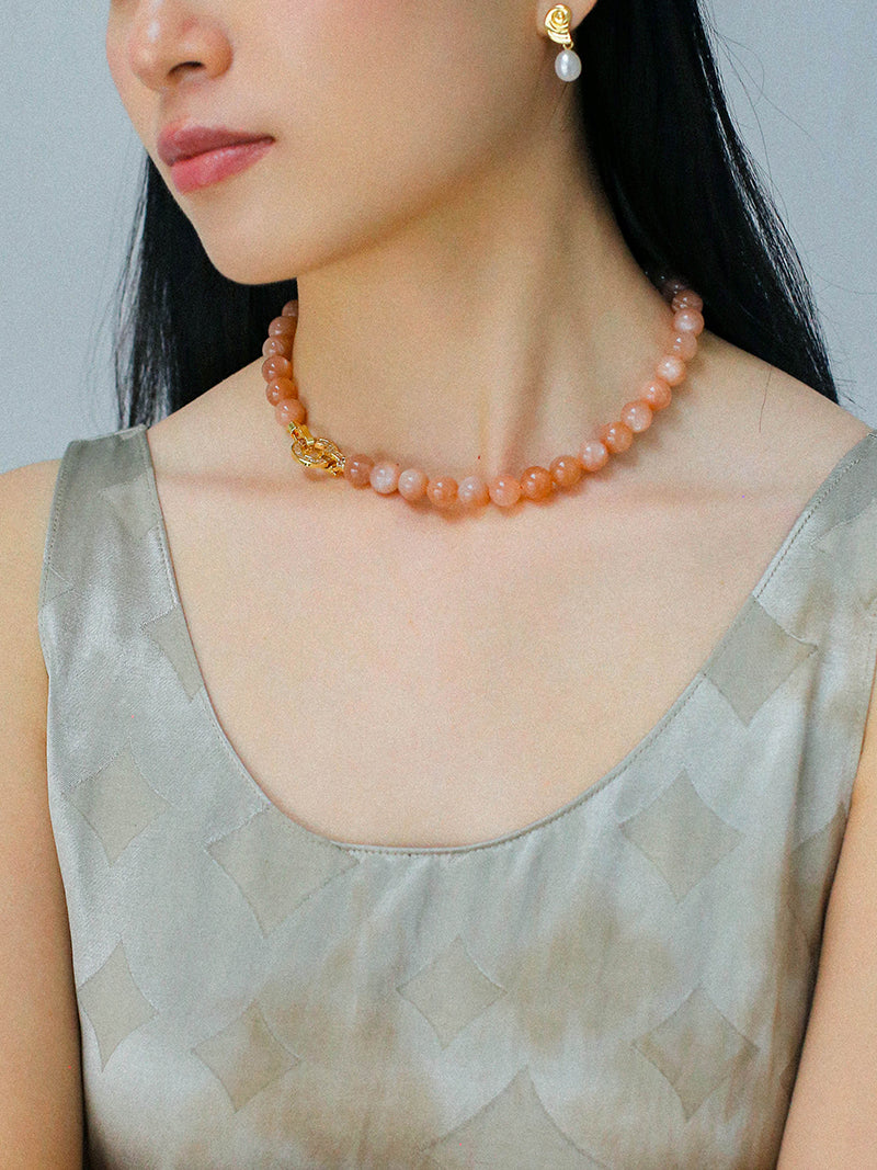 Smooth Round Sunstone Beaded Choker Necklace - floysun