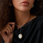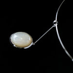 Elevate your style with our White Mother of Pearl Pendant Sterling Silver Choker! This modern and fashionable choker is perfect for urban women, with its textured and light atmosphere. It beautifully accentuates both the neck and face, with simple circles and neat lines. The large oval pendant adds a touch of gentleness and strength.