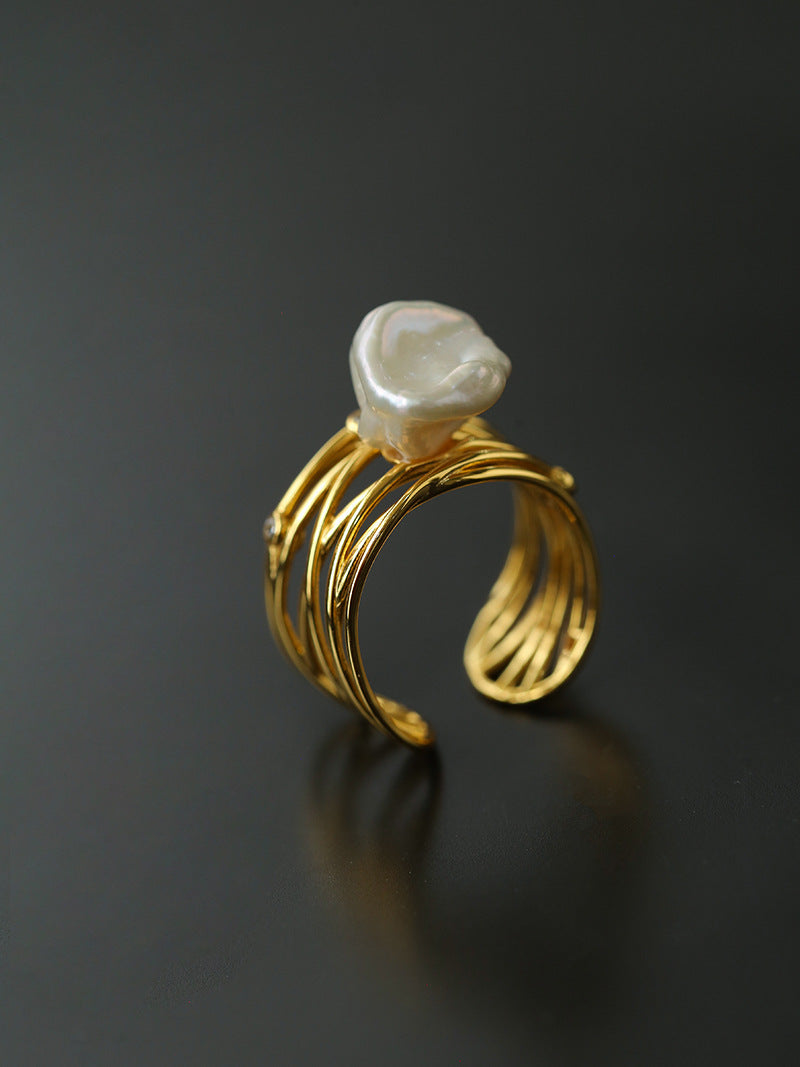 Baroque Freshwater Pearl Multi-Layer Ring - Gold