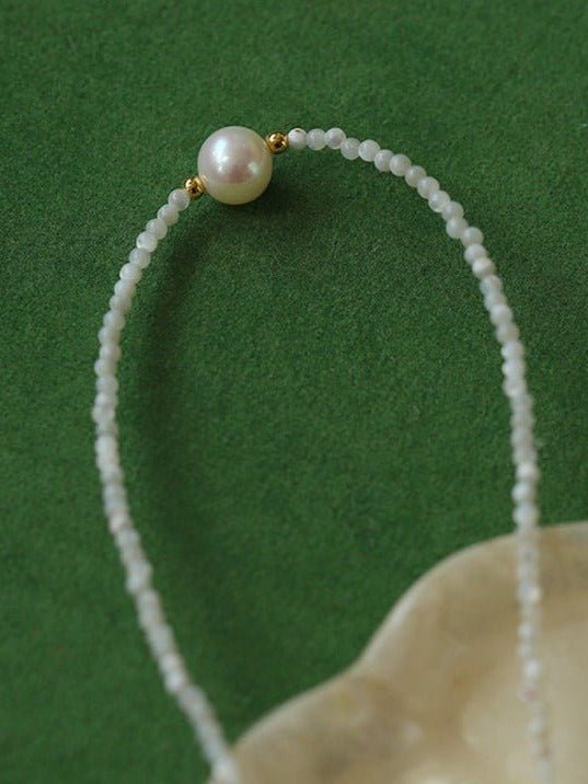 Adorn your neckline with the enchanting beauty of our Natural Pearl Shell Passepartout Necklace—a captivating fusion of natural pearls and shell elements, creating a unique and timeless accessory.