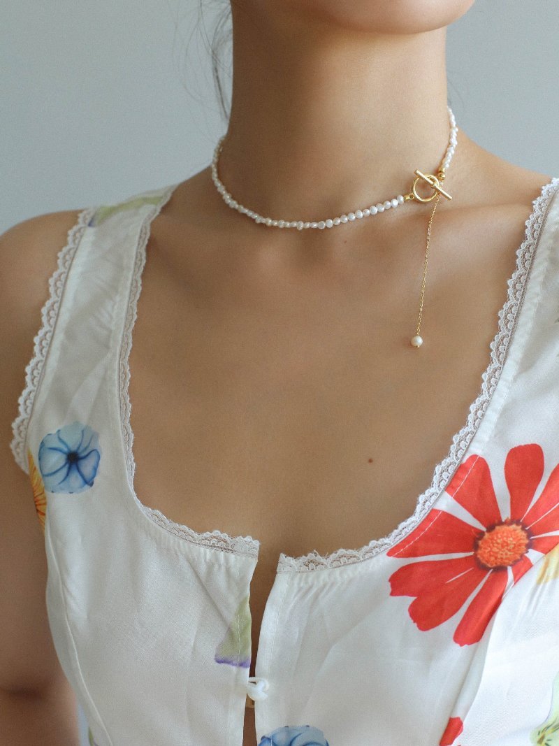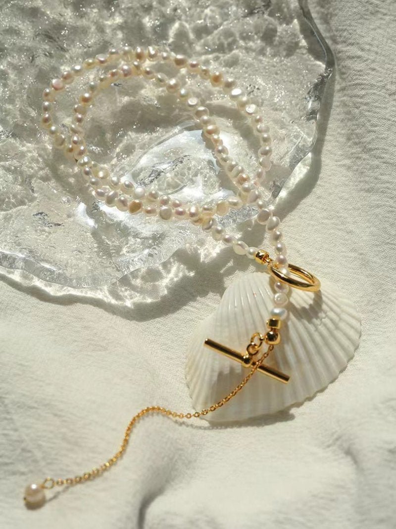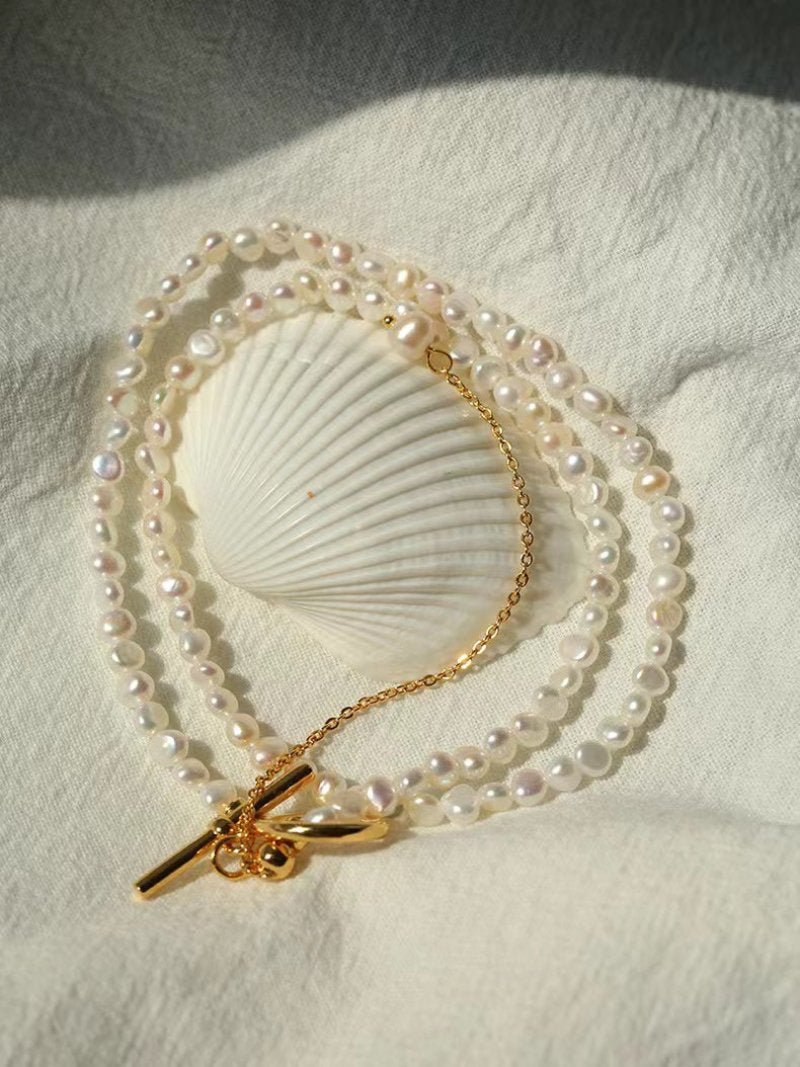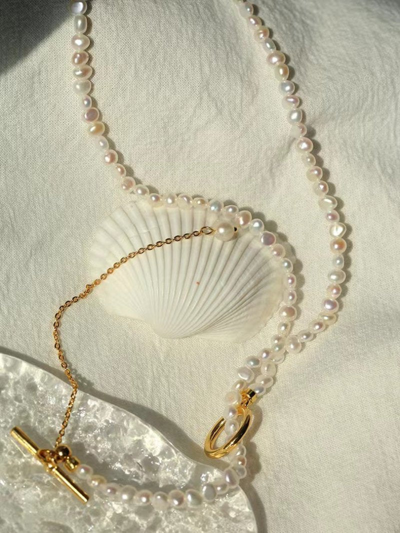 Small Steamed Bun Pearl OT Buckle Necklace