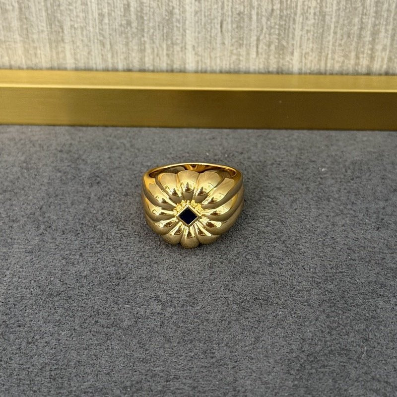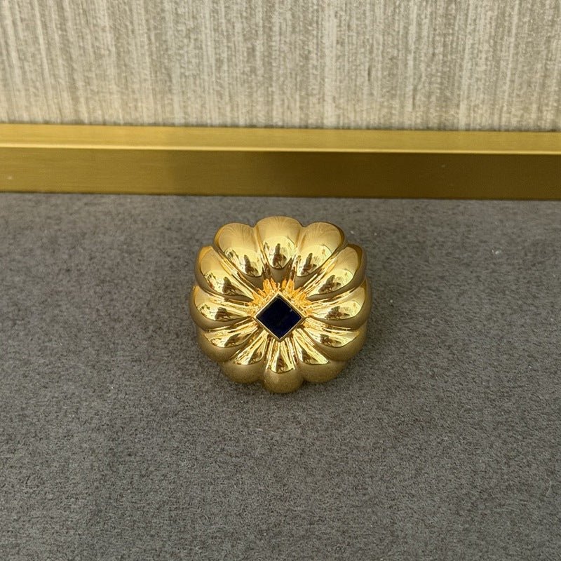Inspired by blooming florals in autumn and winter, this delicate pinky ring features a blue veined stone center resembling a flower bud. The refined silhouette and subtle color contrast create a quietly luxurious look—perfect for stacking or wearing alone as a statement of understated elegance. Designed for women who love niche, artistic jewelry with a modern edge.