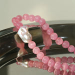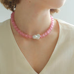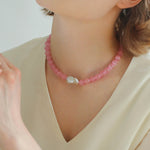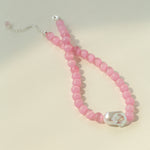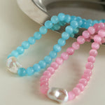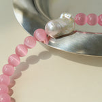 Cat's Eye Stone Baroque Pearl Collar Necklace-Pink