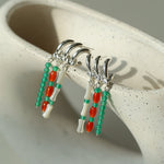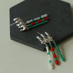 New Chinese Style Bamboo Aventurine Commuting Three - Layer Earrings - floysun