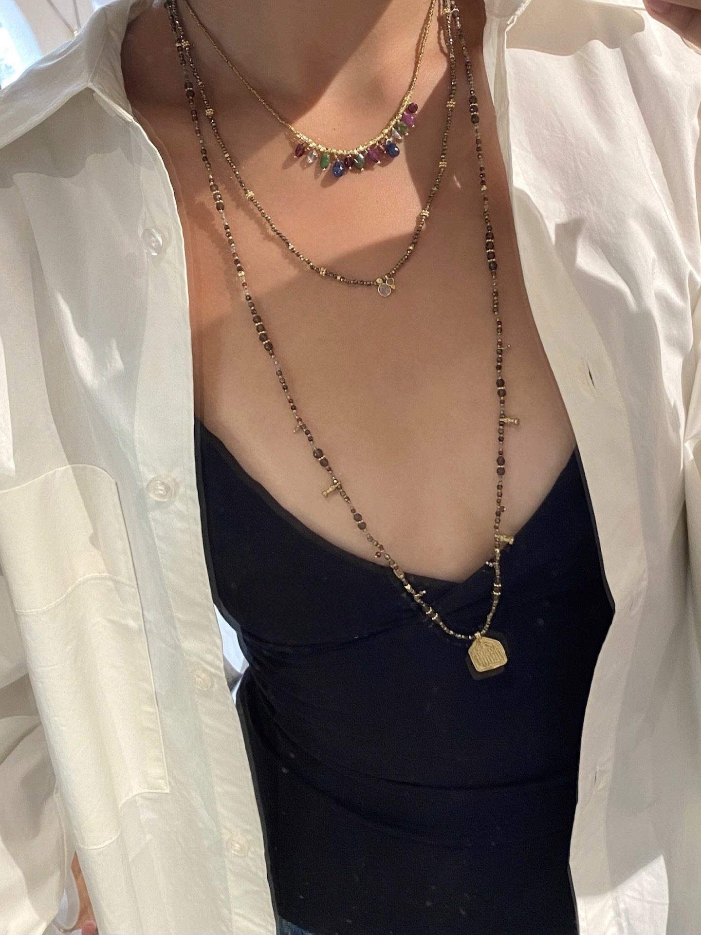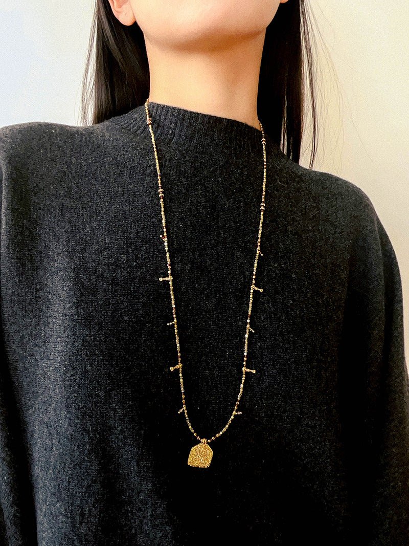 Effortlessly elevates simple outfits like white tees or knitwear into a poetic, wanderer-inspired look. Whether worn solo, layered together, or mixed with other necklaces, it brings an artful, elevated finish every time.
