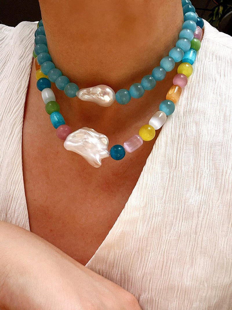 Dopamine Colorful Cat's Eye Baroque Necklace
