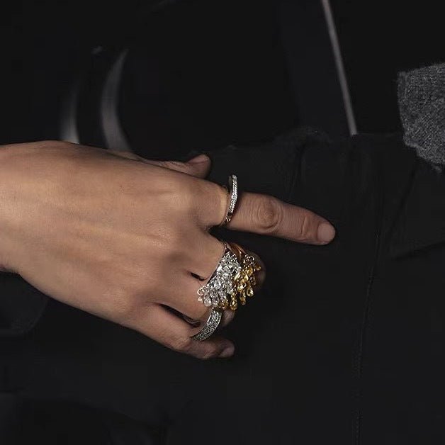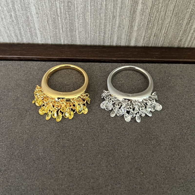 Inspired by the elegance of falling rain, this dazzling ring features a cascade of sparkling lab-created diamonds flowing like crystal raindrops. Crafted from durable metal, available in 18K gold-plated copper or 925 sterling silver, it catches the light from every angle. Designed for the index finger, this statement ring adds a high-end sparkle to any look.
