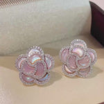 Camellia Sparkle Stud Earrings – Natural Pink Mother - of - Pearl - floysun