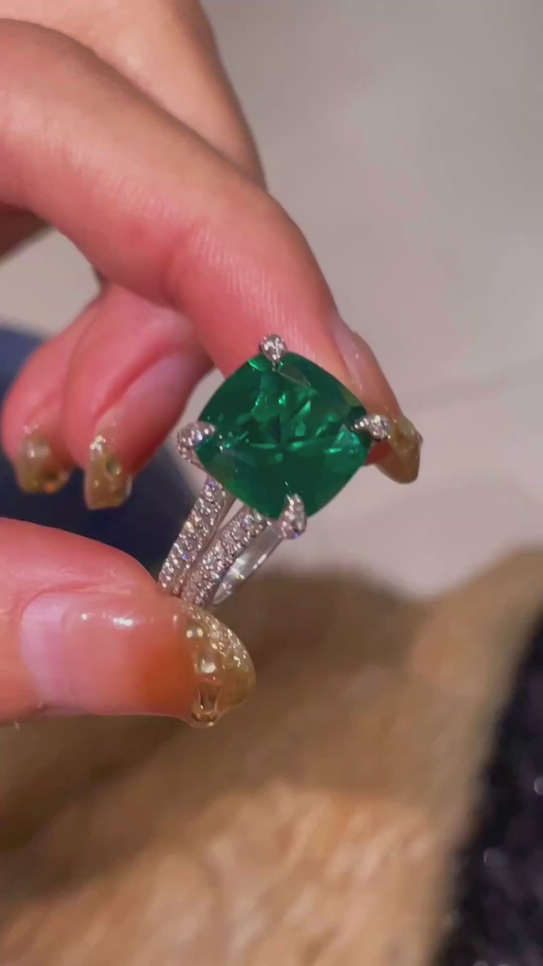• Gemstone: Lab-created emerald centerpiece (large stone)