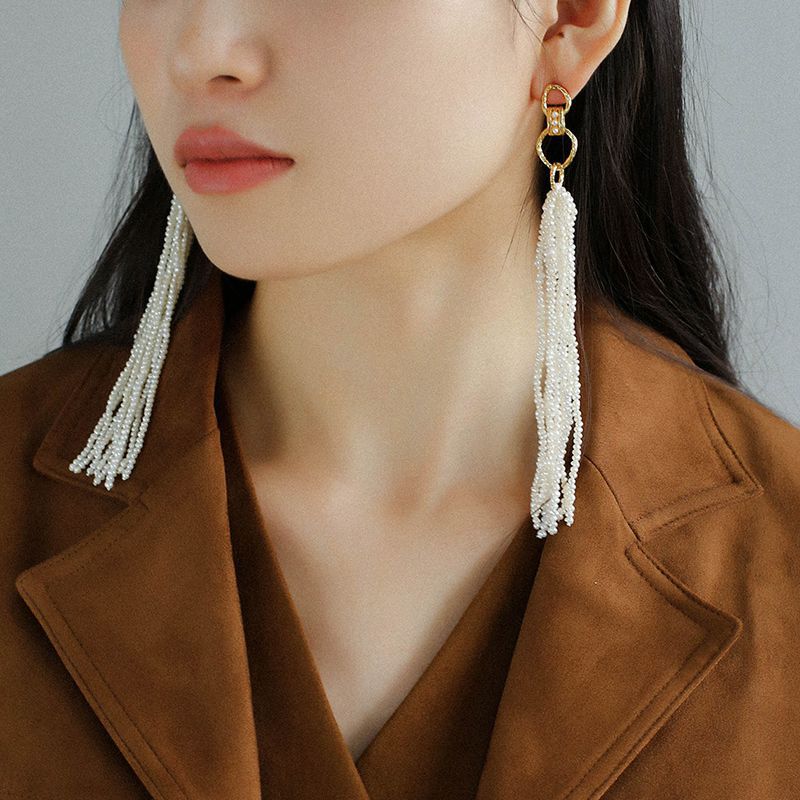 Experience the luxurious blend of craftsmanship, elegance, and natural beauty with our Braided Long Rice Grain Pearl Earrings. Adorned with lustrous freshwater pearls and intricate braided details, these earrings are a visually stunning and versatile accessory for any special occasion.