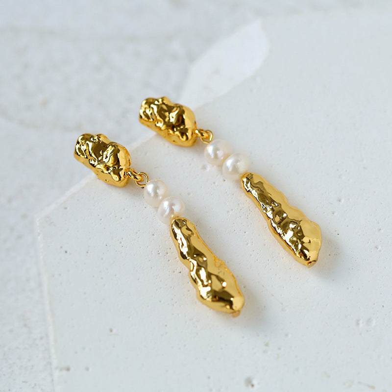 Geometric Irregular Metal Toothpicks Spliced Round Pearl Earrings