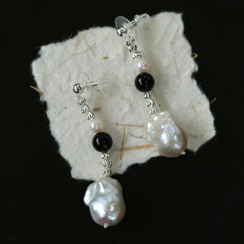 Pearl and Black Onyx Long Drop Earrings - floysun