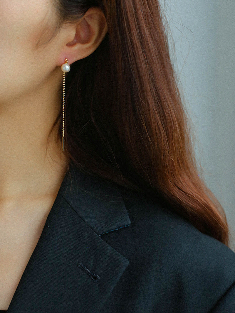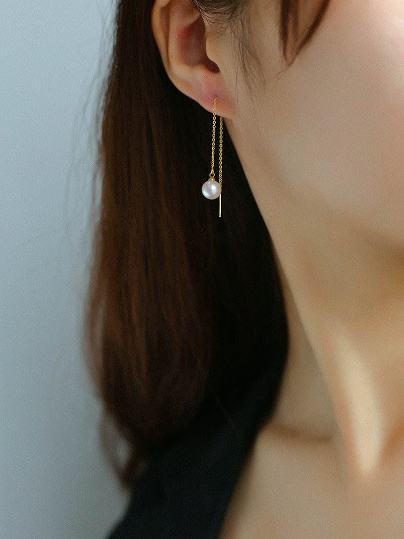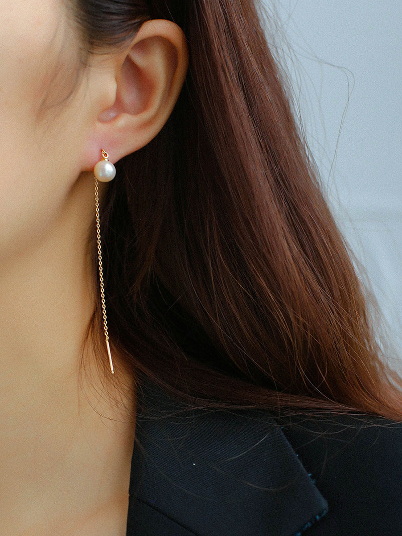 Elevate your style with these stunning Long Pearl Threader Drop Earrings in 14K gold filled.