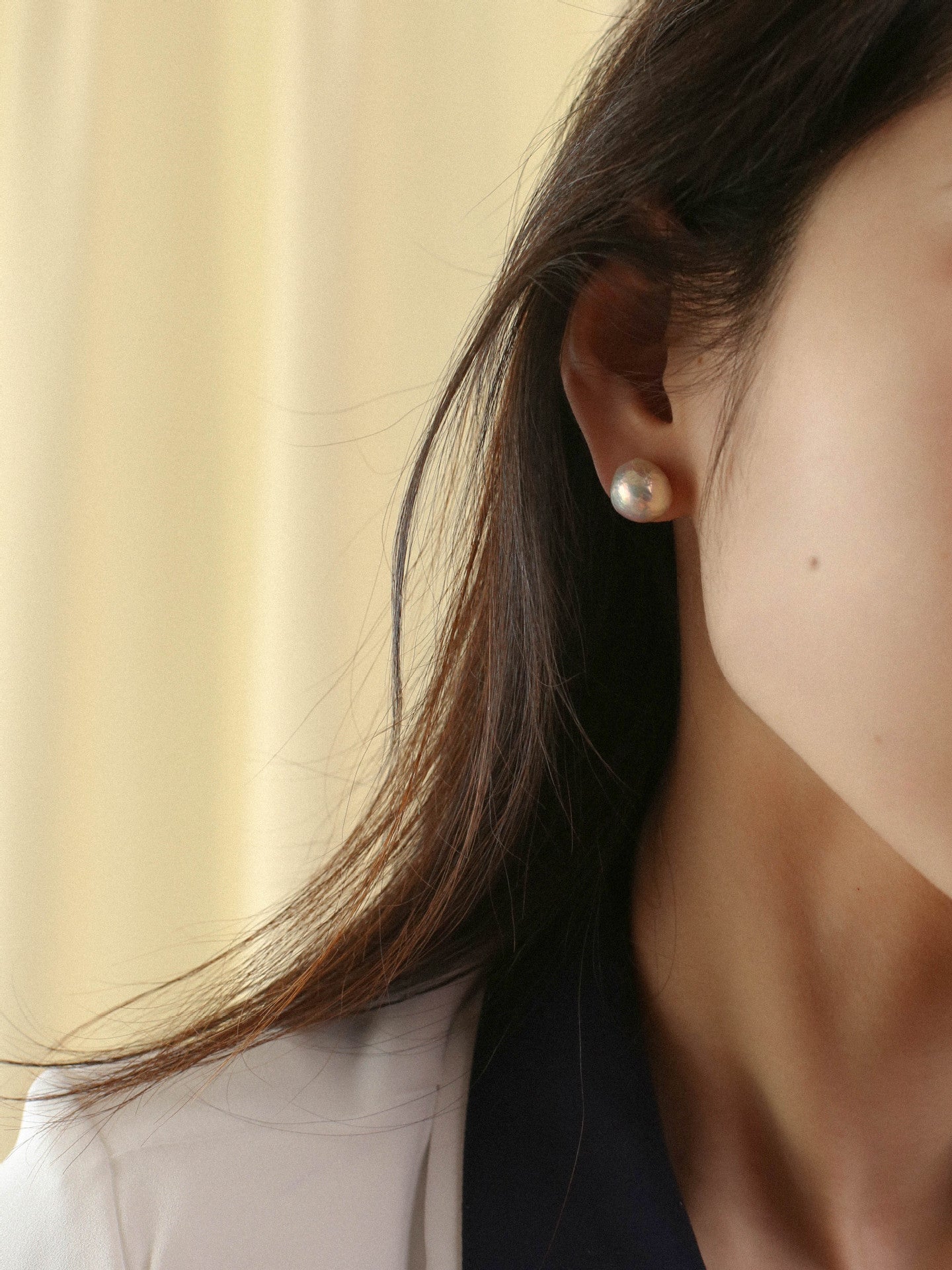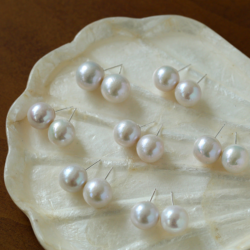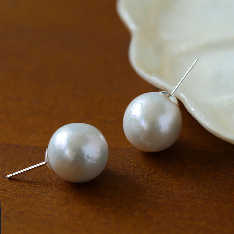 Textured Wrinkled Round Baroque Pearls Studs Earrings