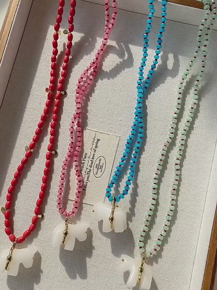 Paired with high-saturation natural stone bead chains, each color embodies a distinct mood: