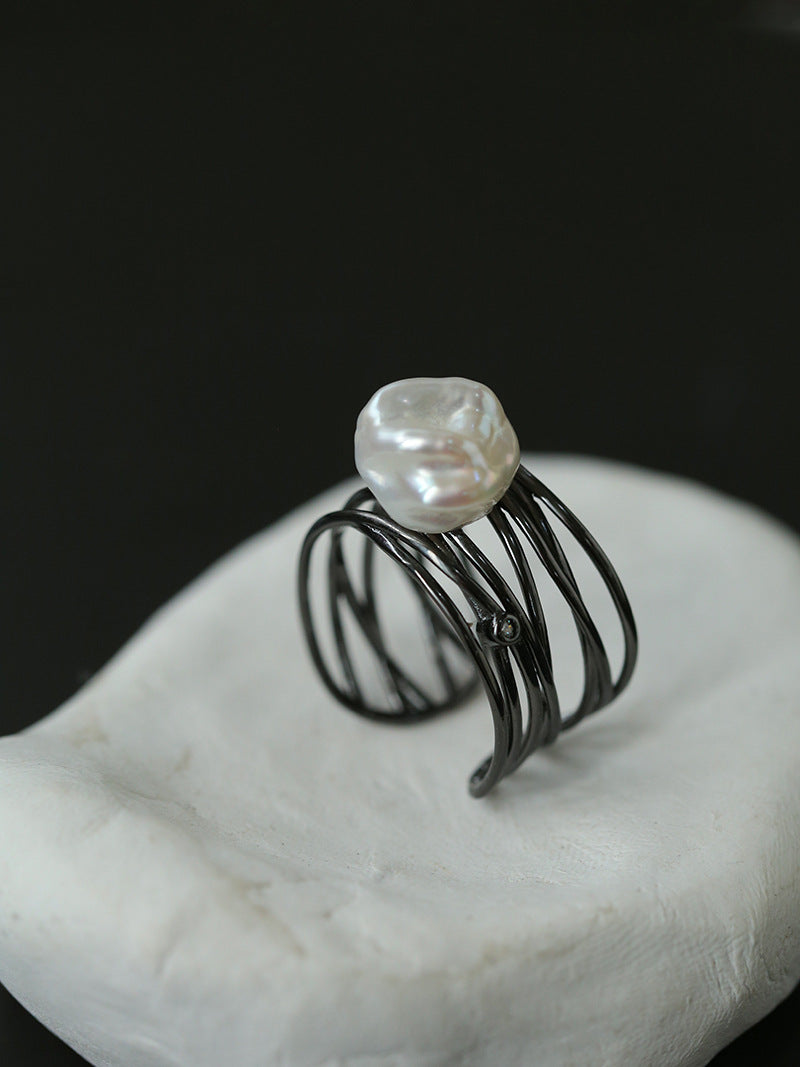 Baroque Freshwater Pearl Multi-Layer Ring - Black