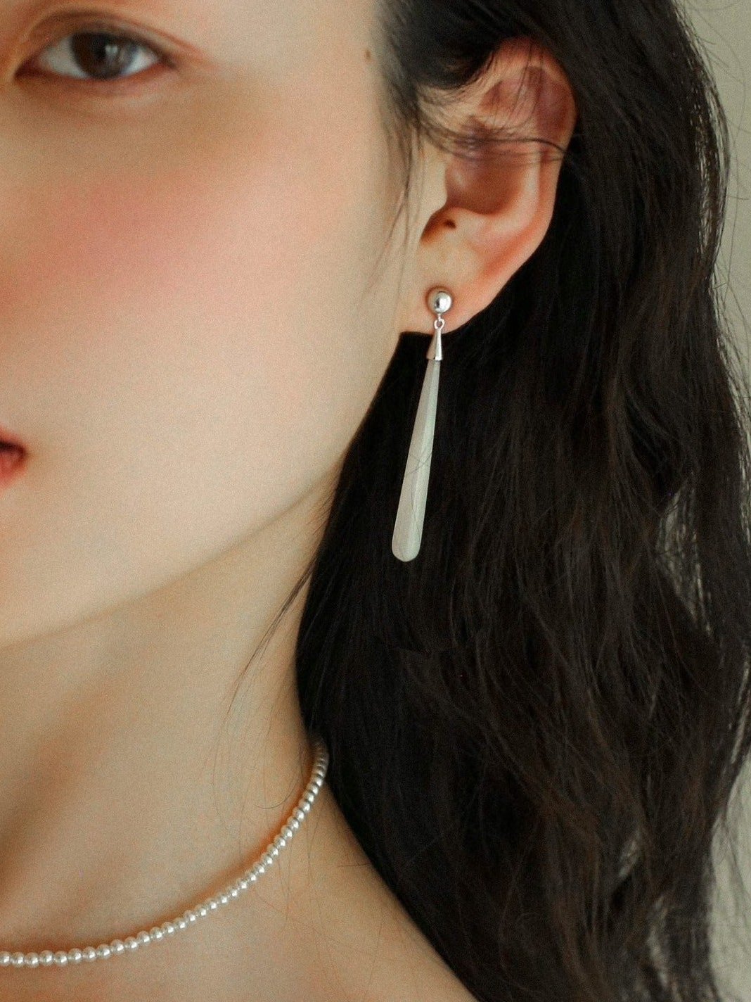 925 Silver Long Teardrop White Mother of Pearls Earrings - floysun