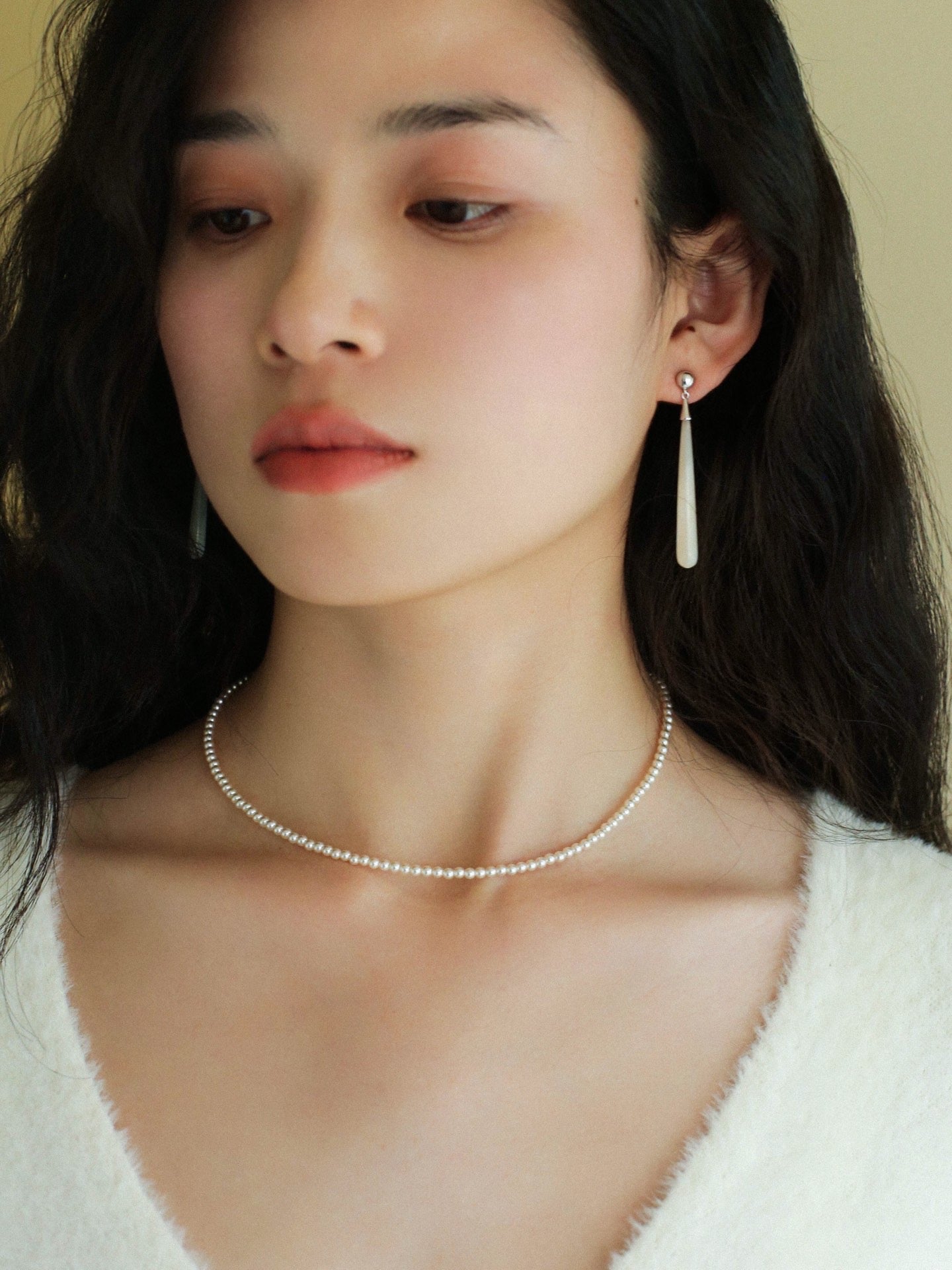925 Silver Long Teardrop White Mother of Pearls Earrings
