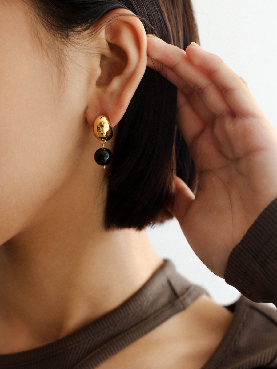 Black Onyx Drop Huggie Earrings - 18K Gold Vermeil