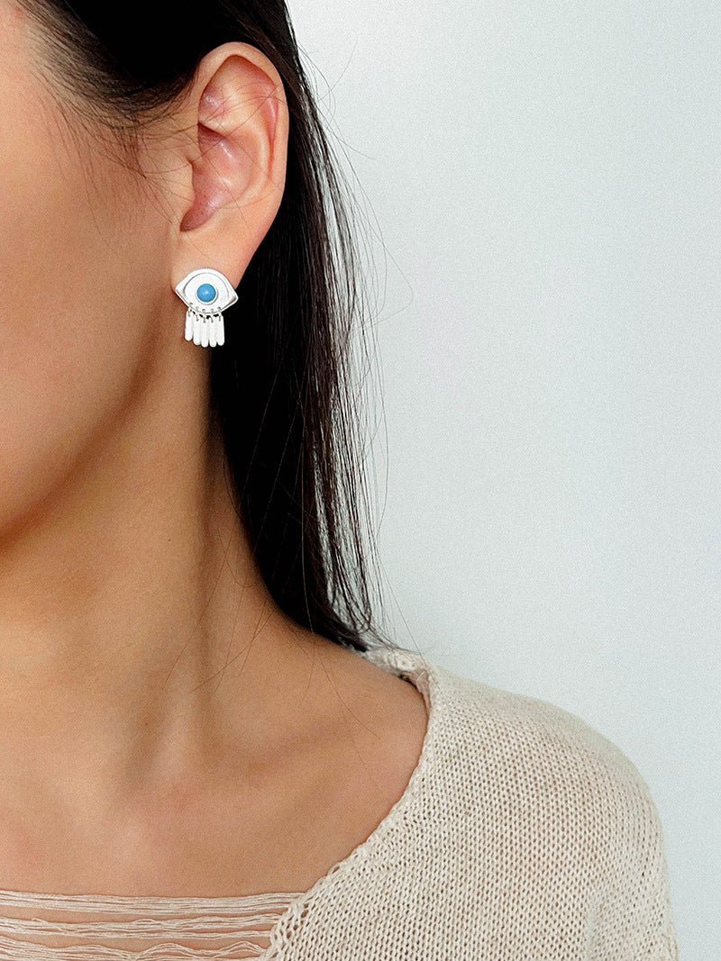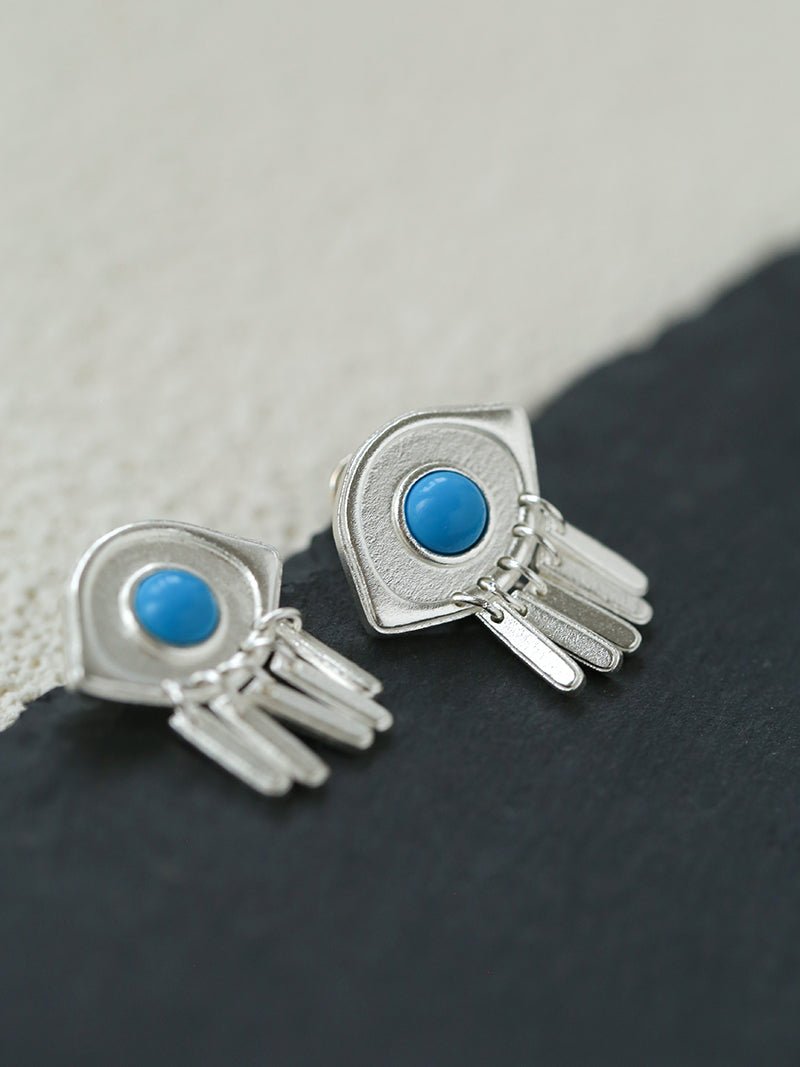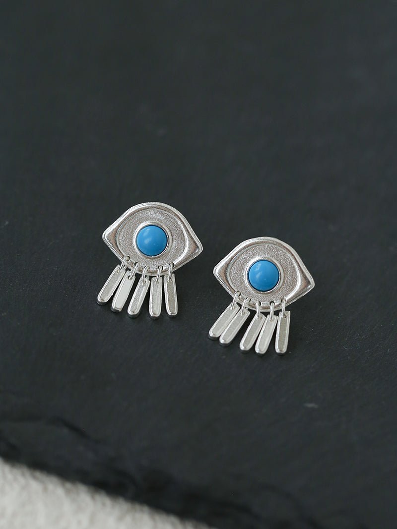 925 Sterling Silver Turquoise Eye Tassel Earrings - floysun