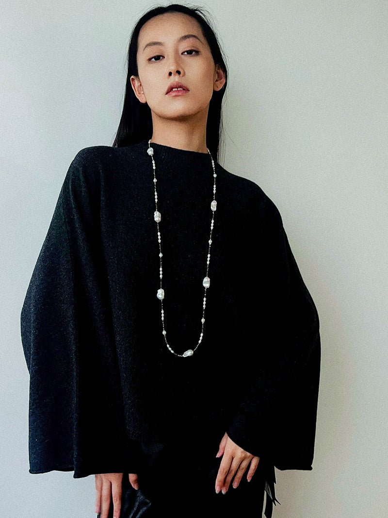Designed with a double-layer structure, the short version pairs gold ore stones with hand-selected large baroque pearls, creating an instant layered look without the need for extra styling.