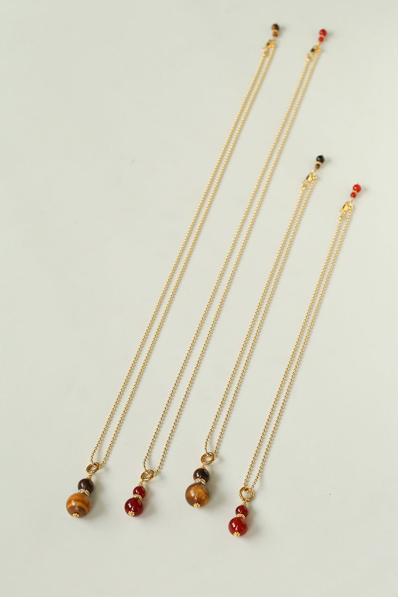 This original gourd pendant necklace blends traditional Eastern symbolism with modern minimal design. Featuring polished Tiger’s Eye or Red Agate, the piece carries a soft, refined elegance while symbolizing fortune and prosperity.