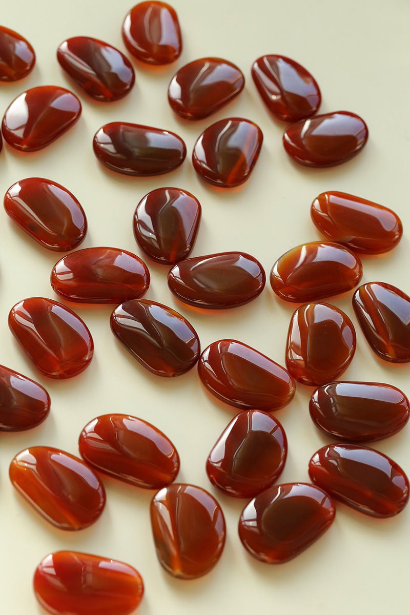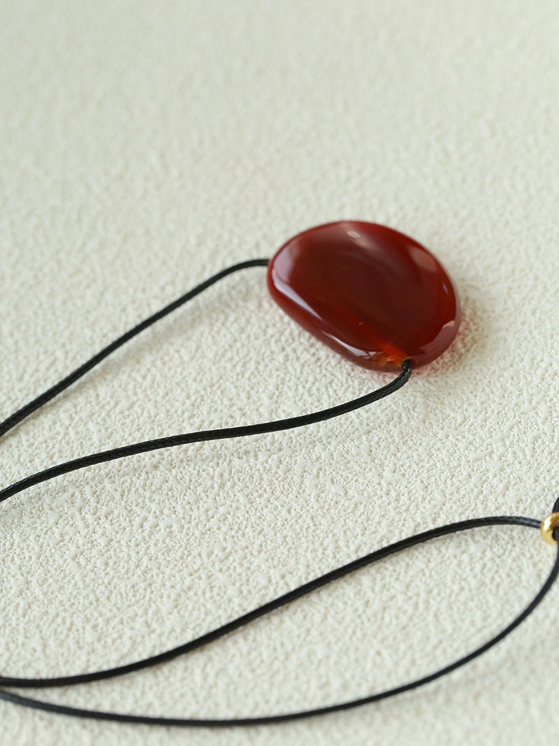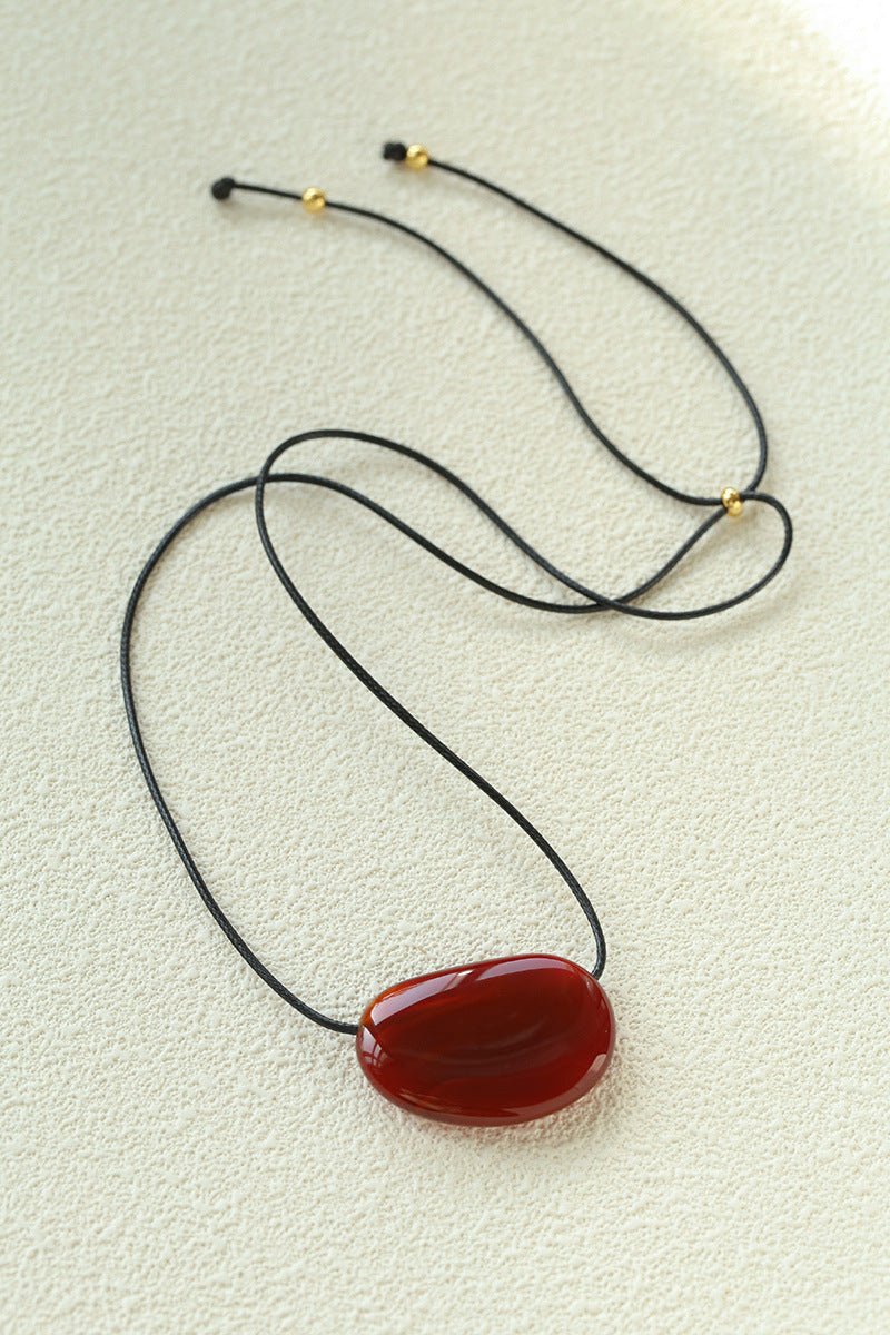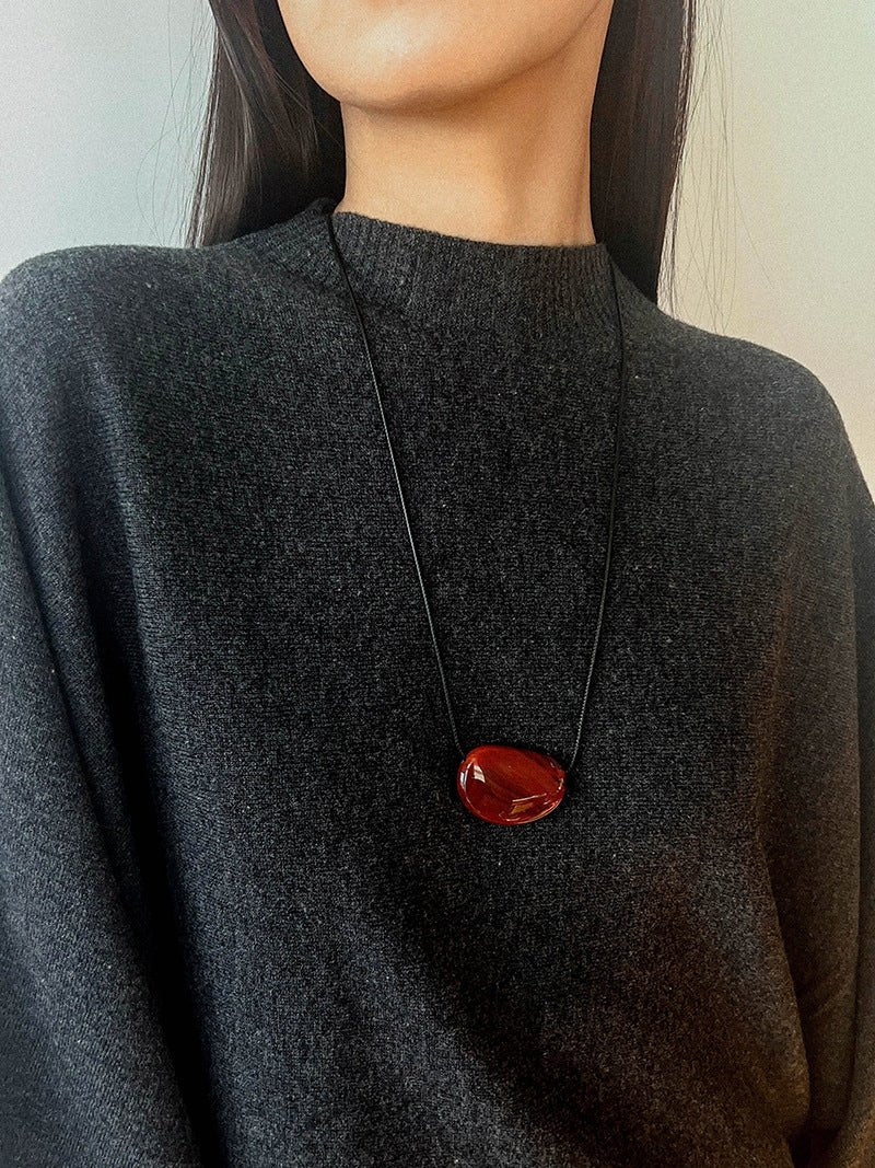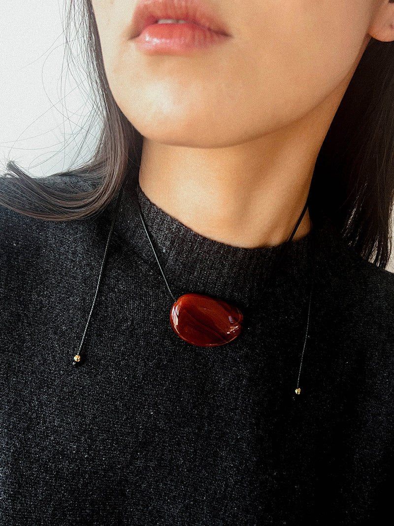 Available in warm red agate and classic black agate, perfect with white shirts, little black dresses, or knitwear, adding a retro and artistic vibe.