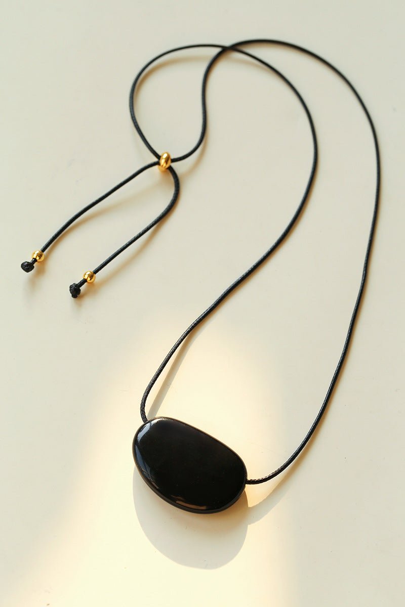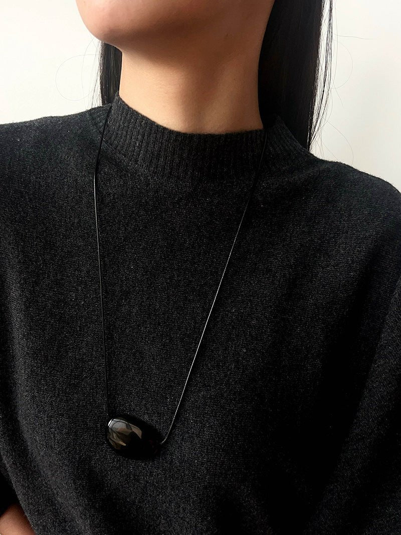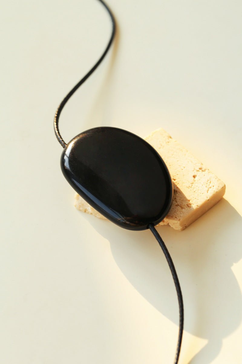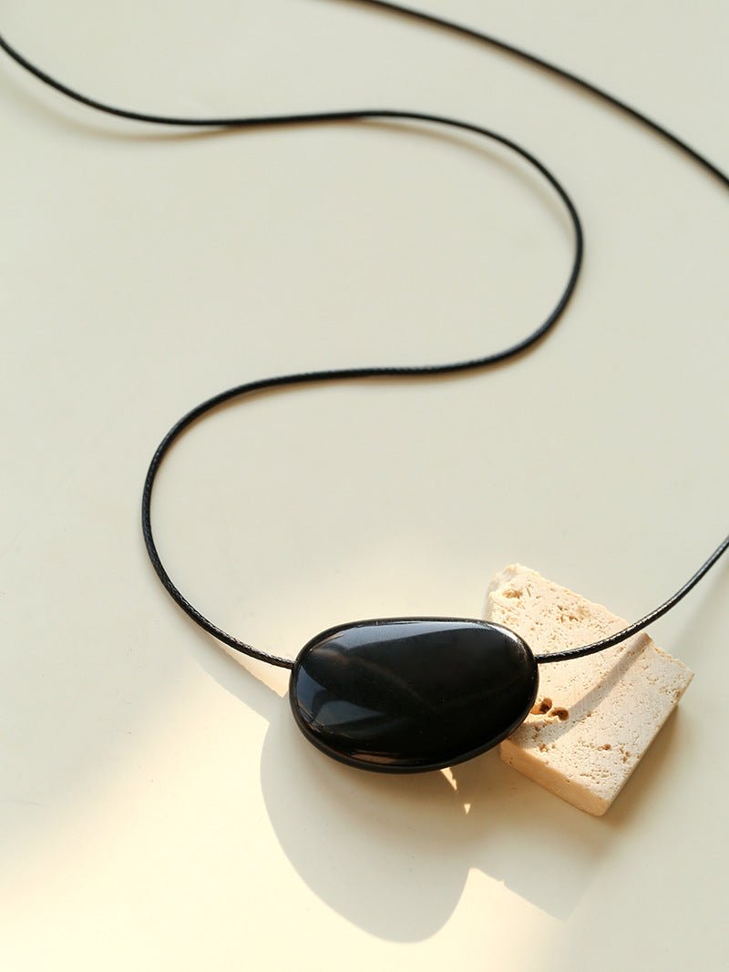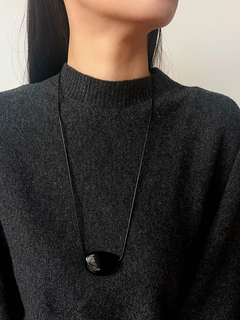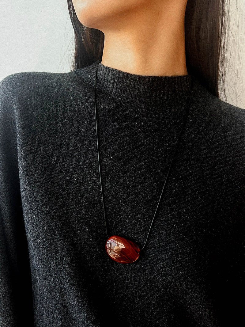 Oval geometric agate pendant with rich color and subtle shine, exuding minimalist sophistication.