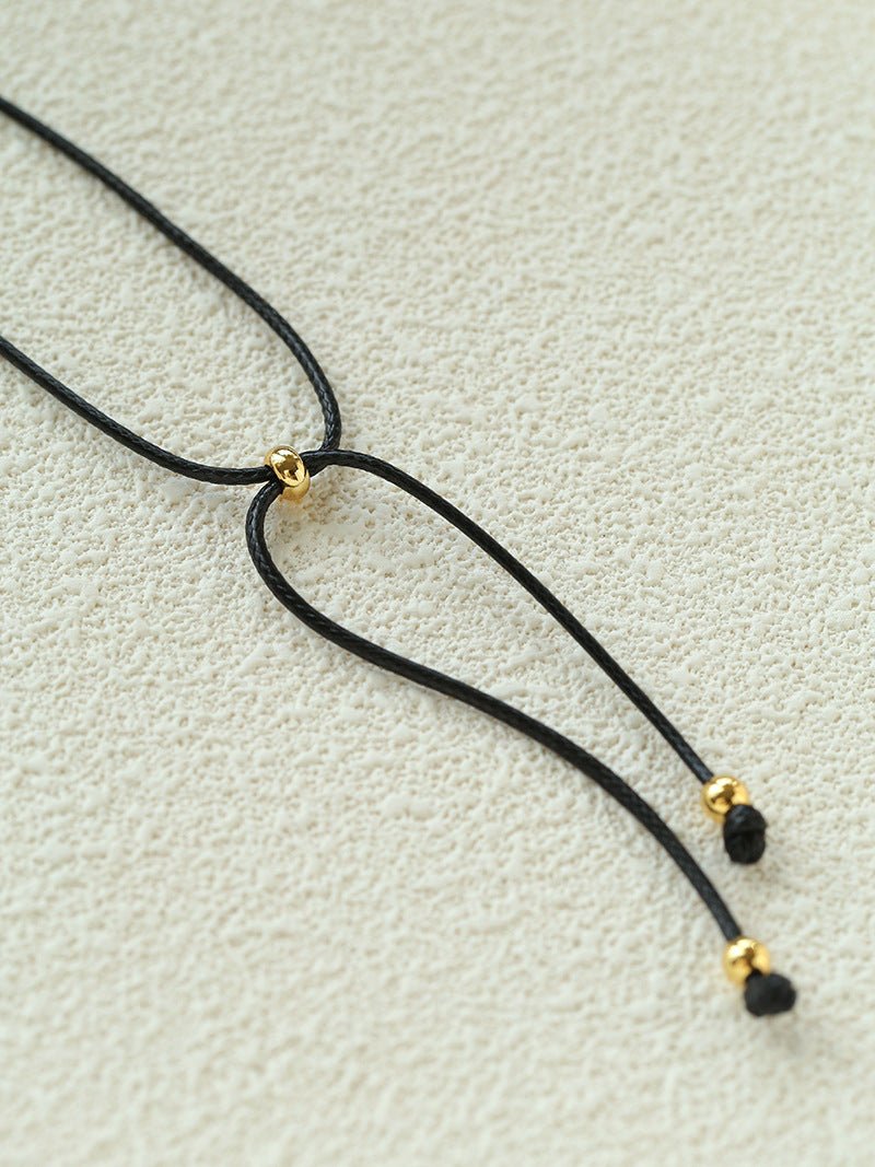 Paired with an adjustable black leather cord and metal clasp, it can be worn alone or layered for versatile styling.